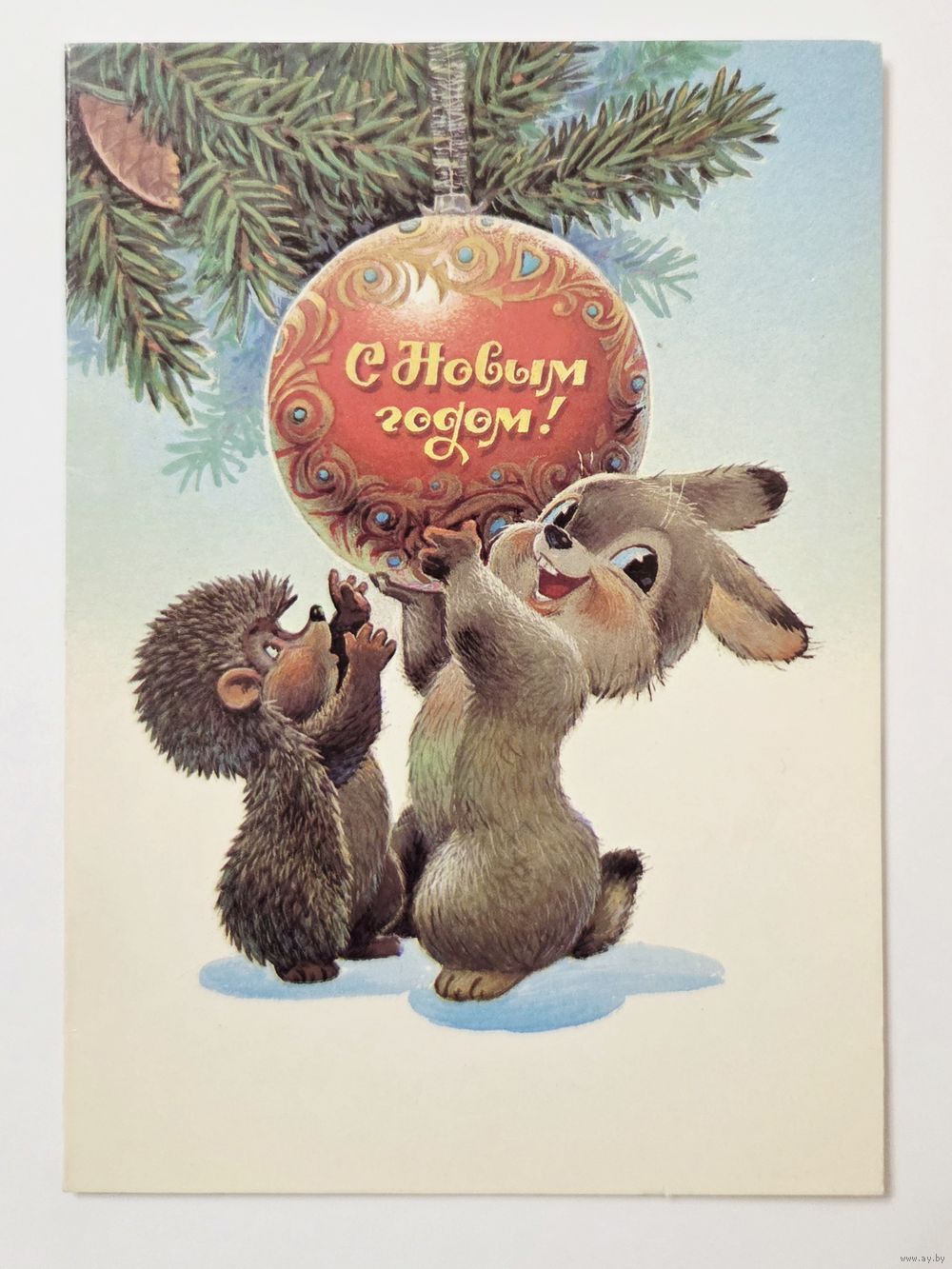 Зарубин С Новым годом 1989 чистая открытка СССР