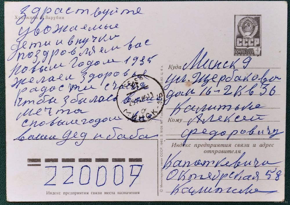 Зарубин В. С Новым Годом! 1982 г. ПК. Прошла почту.