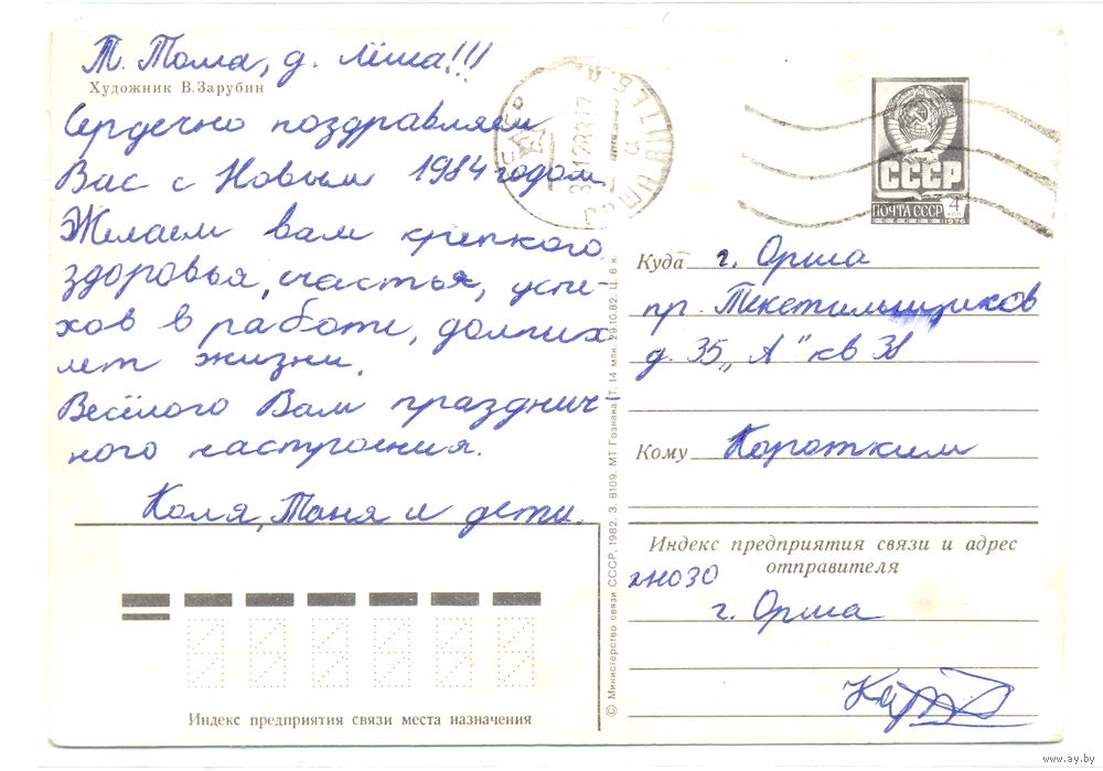 Зарубин В. С Новым годом! 1982. ПК Прошла почту. Передача в Витебске возле ратуши. Пересылка в другой город за счёт покупателя по тарифам Белпочты либо Европочты после 100% предоплаты.