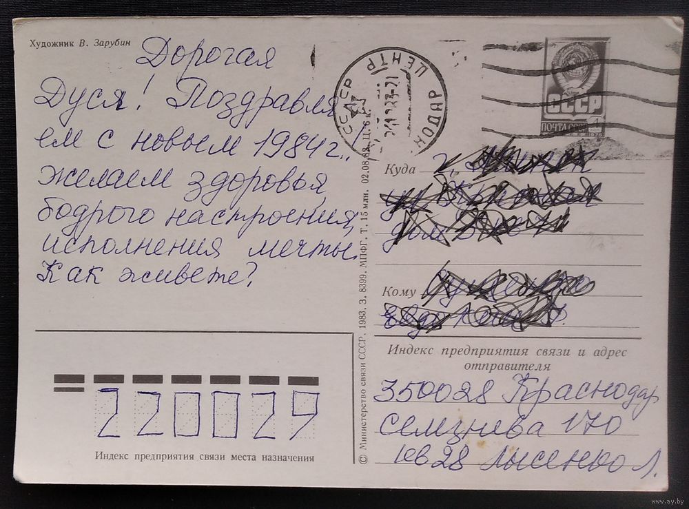 Зарубин В. С Новым годом! 1983 г. Прошла почту.