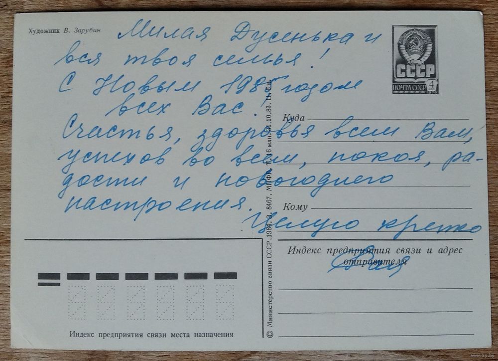 Зарубин В.С Новым годом! 1984 г. ПК. Прошла почту.