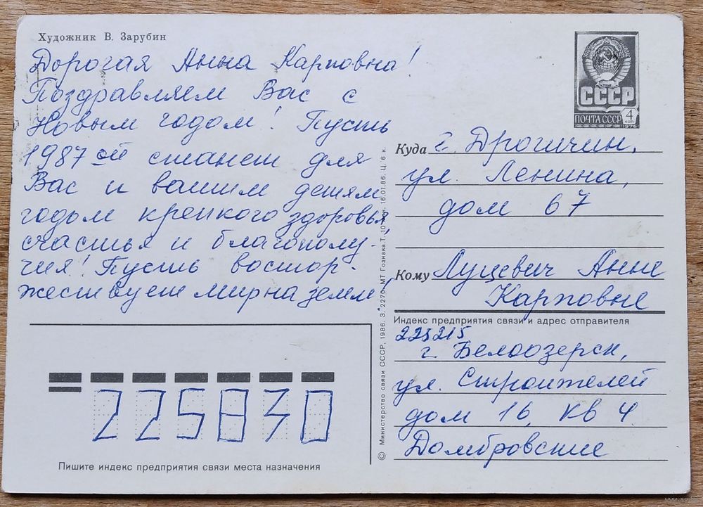Зарубин В. С Новым годом! 1986 г. ПК. Прошла почту.