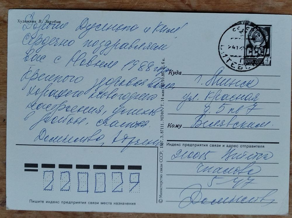 Зарубин В.С Новым годом! 1987 г. ПК. Прошла почту.
