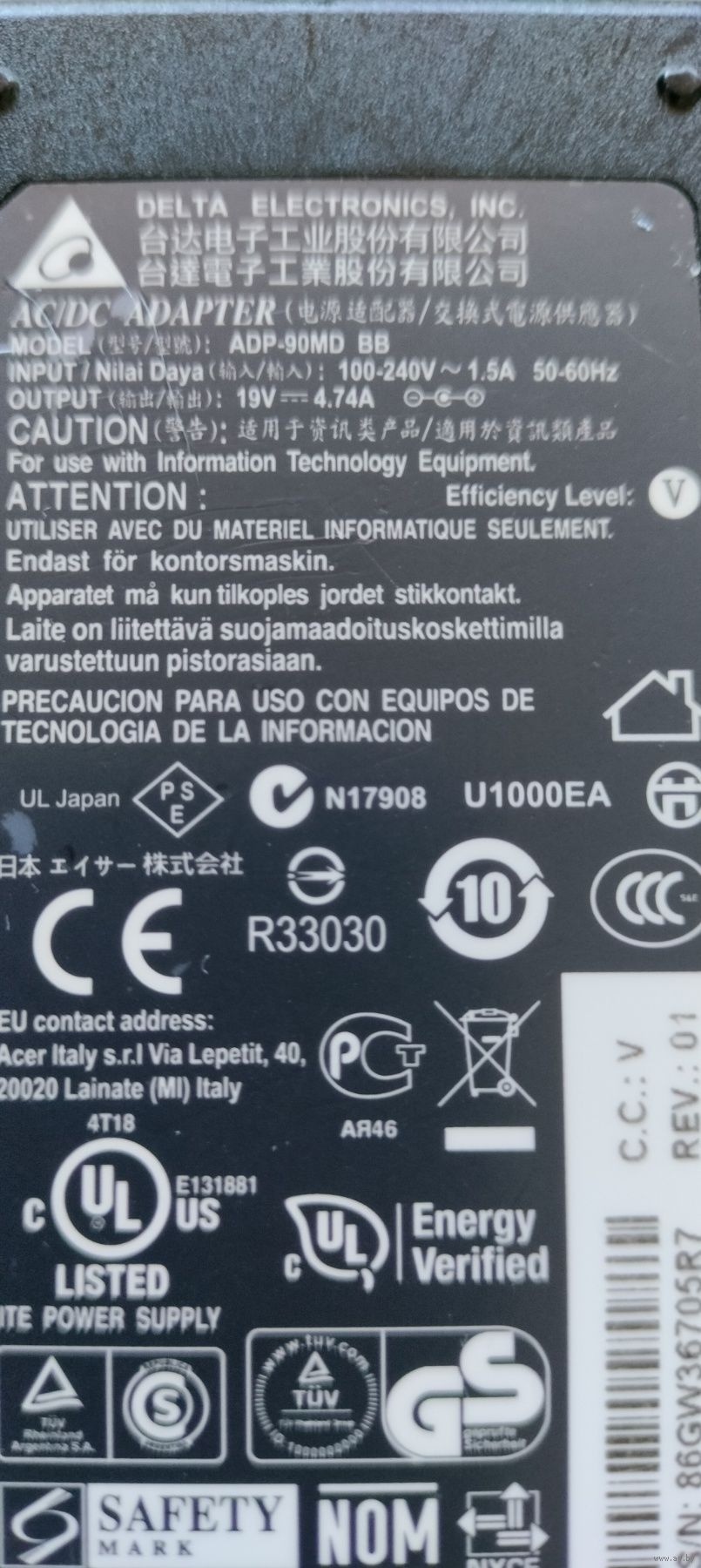 Зарядное (блок питания) для ноутбука Acer (Original) 19V 4.74A, 90W Разъем: 5.5x1.7