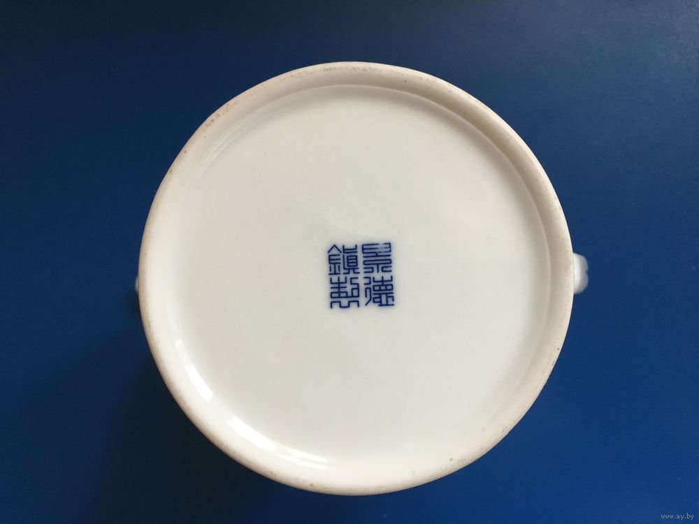 Китай, 20 век, 15 см, подглазурная роспись, подглазурное клеймо, идеальное состояние, в быту не использовался, витринное хранение как предмета высокого искусства. Без торга