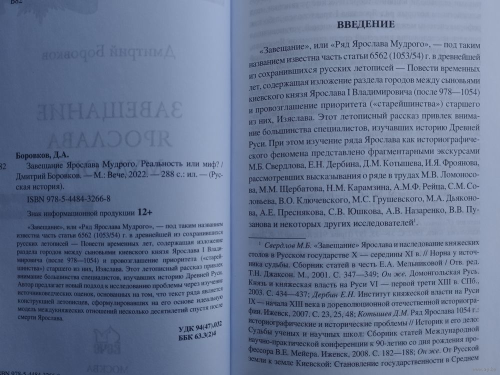 Тираж 800 экз. 288 стр. «Завещание», или «Ряд Ярослава Мудрого», — под таким названием известна часть статьи 6562 (1053/54) г. в древнейшей из сохранившихся русских летописей — Повести временных лет, содержащая изложение раздела городов между сыновьями киевского князя Ярослава I Владимировича (после 978—1054) и провозглашение приоритета («старейшинства») старшего из них, Изяслава. Этот летописный рассказ привлек внимание большинства специалистов, изучавших историю Древней Руси. Автор предлагает новый подход к исследованию проблемы через изучение источниковедческих оценок, основанных на том, что текст ряда является конструкцией летописцев, сформулировавших на его основе идеальную модель междукняжеских отношений несколько десятилетий спустя после смерти Ярослава.