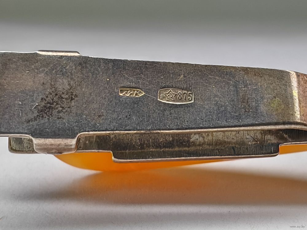 Зажим для галстука Янтарь Серебро 875 пр. (2ЯК) СССР