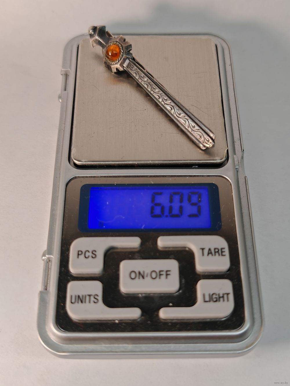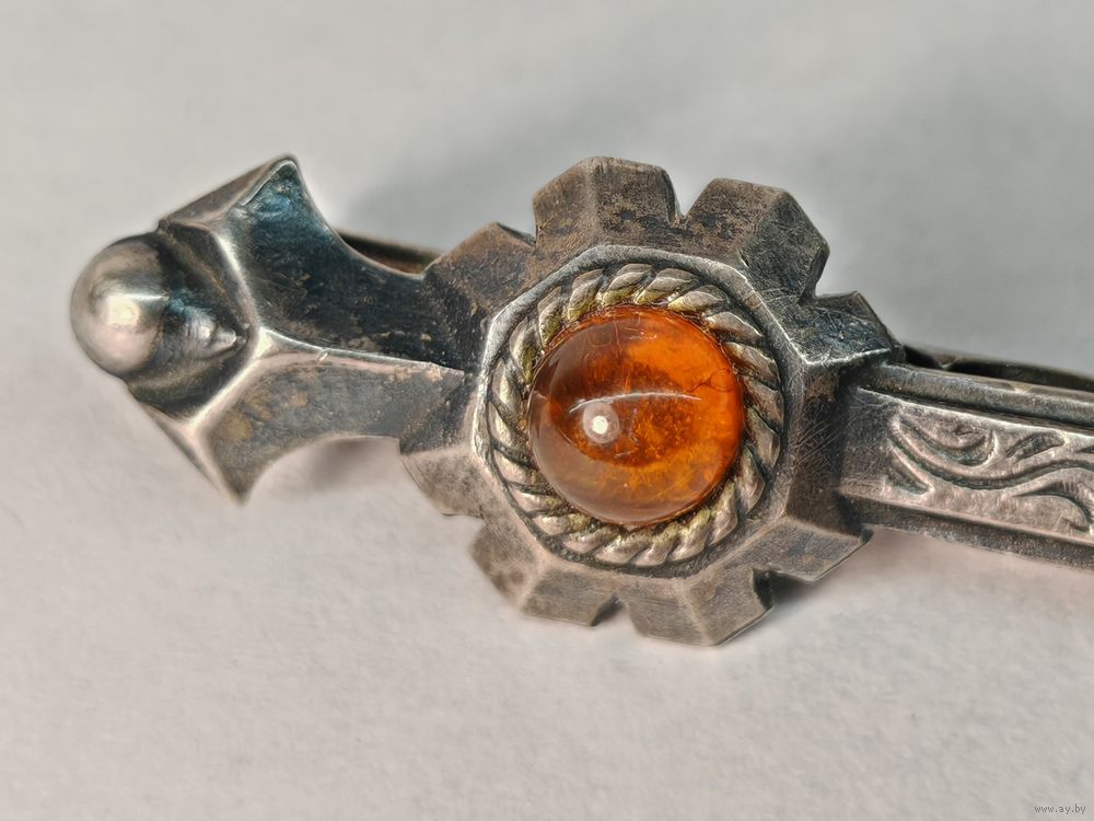 Зажим для галстука Янтарь Серебро 875 пр. СССР. С рубля