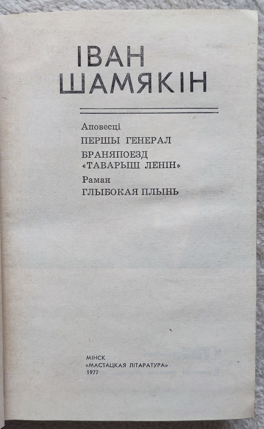 Першы том Збору твораў Івана Шамякіна ў шасці тамах складаюць аповесці "Першы генерал" і "Браняпоезд "Таварыш Ленін", а таксама раман "Глыбокая плынь". Прадмову да выдання напісаў доктар філалагічных навук Павел Дзюбайла.