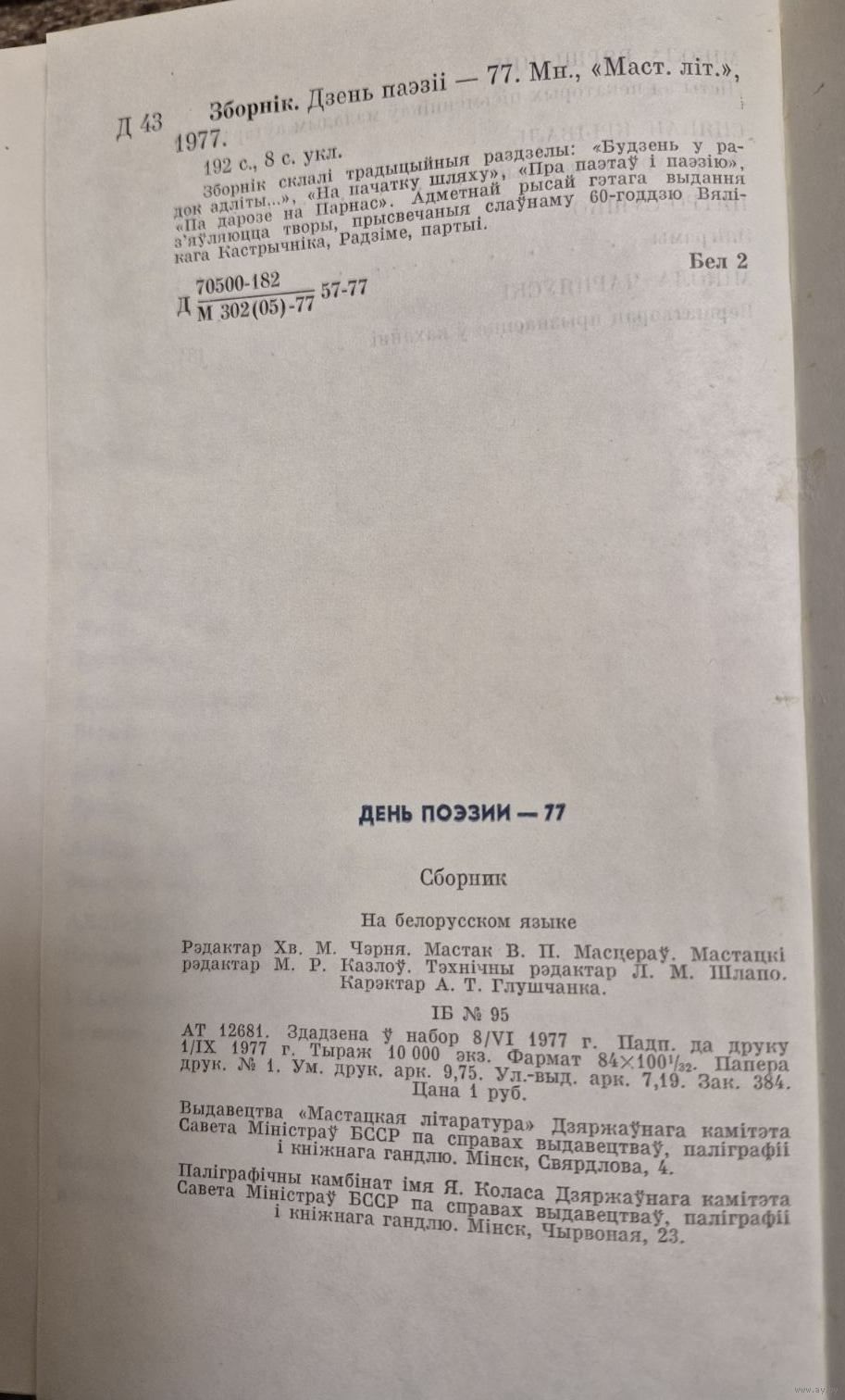 12. Зборнік. Дзень паэзіі (зборнік), Мінск "Мастацкая літаратура" 1977г