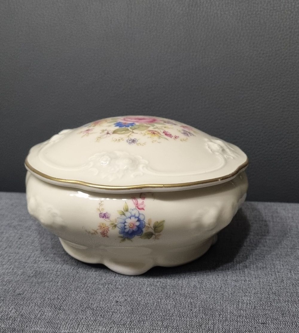 Фарфоровая винтажная шкатулка с цветочным декором и позолотой производства баварской компании Zeh Scherzer.