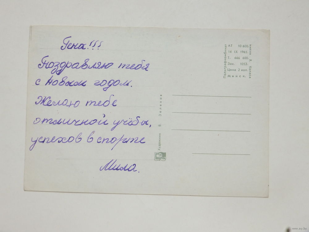 Зеленов с новым годом 1965 10х15 открытка БССР