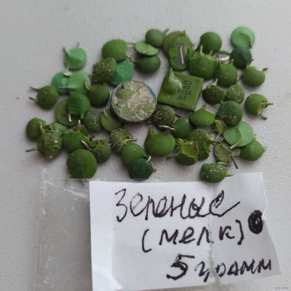 зеленые керамические (мелкие) конденсаторы (КМ), общей группы, 5 грамм, см.фото, спасибо.