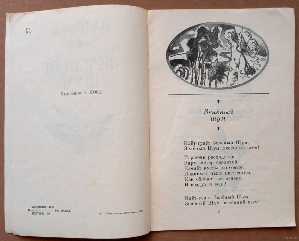 Зелёный шум. Николай Некрасов. Юнацтва 1984г. Художник Елена Лось Алена (1933-2013).