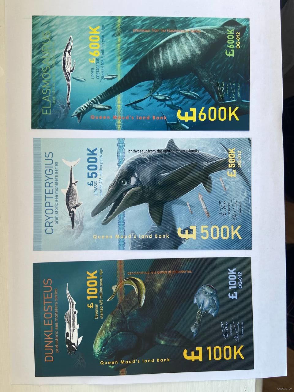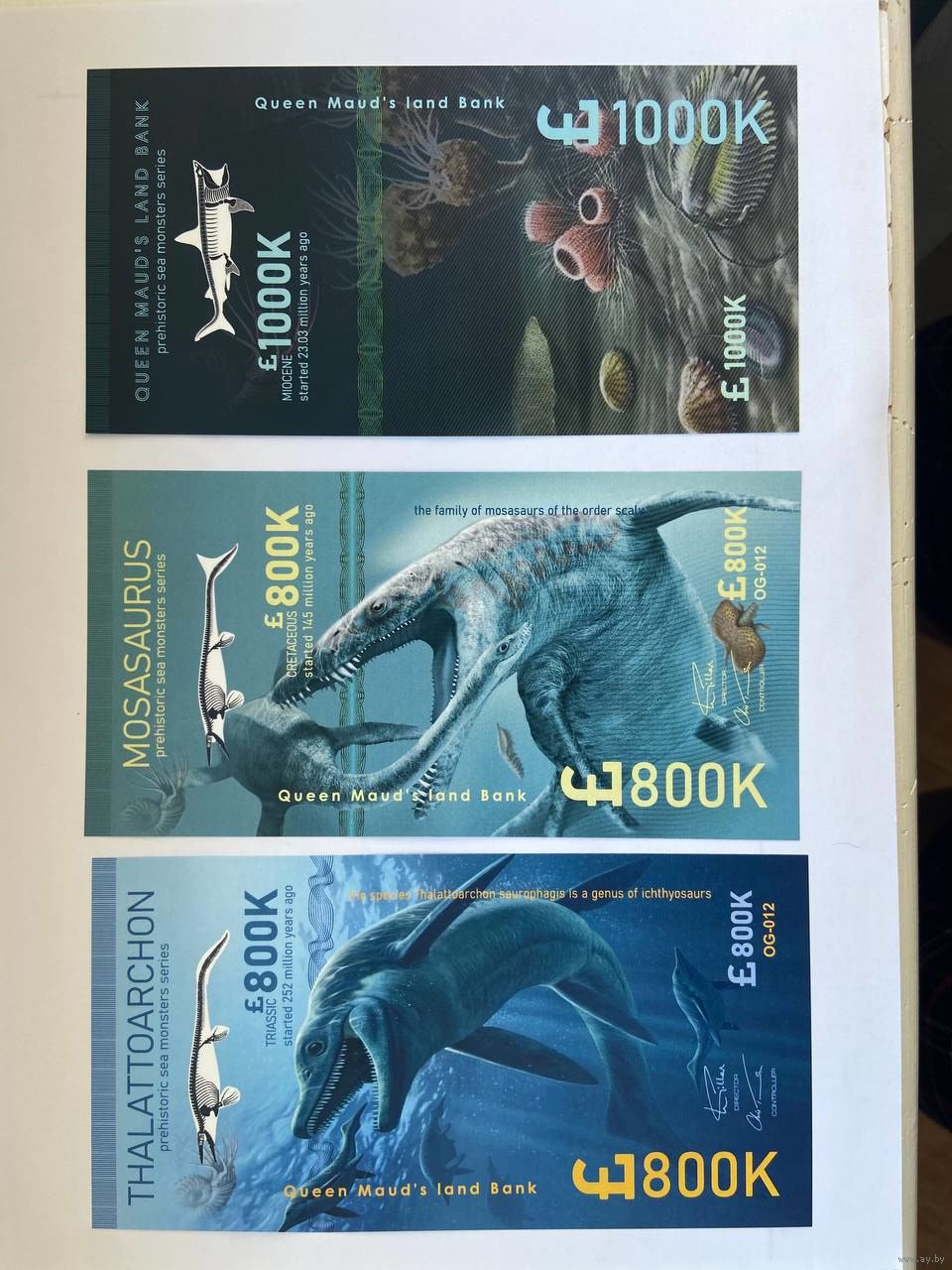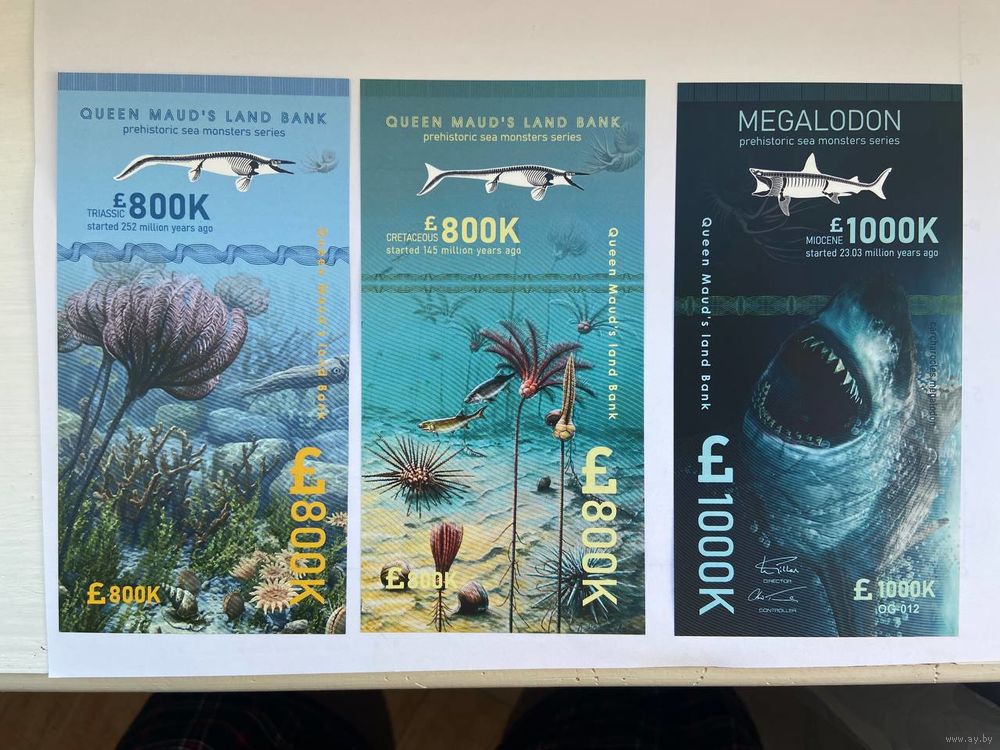 Серия - "Доисторические морские монстры". Неофициальная денежная единица – фунт. Эти банкноты выпущены специально для коллекционеров бон. На лицевой и оборотной сторонах банкнот изображены различные представители фауны. Эти "коллекционные" деньги выполнены из пластика.