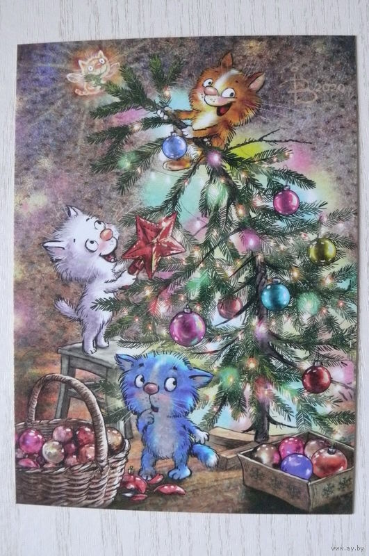 Зенюк Ирина, Новый год, котята, ёлка; 2022, чистая.