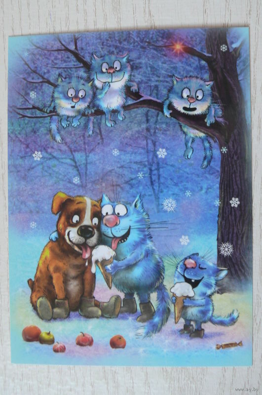 Зенюк Ирина, Зима, синие коты, пёс, мороженое; 2021, чистая.