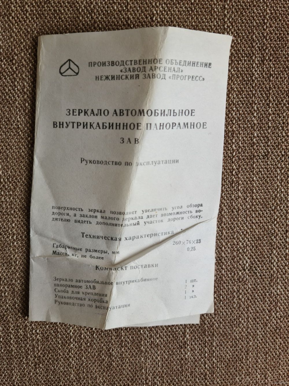 Зеркало автомобильное внутрикабинное. Ретро. Из СССР.