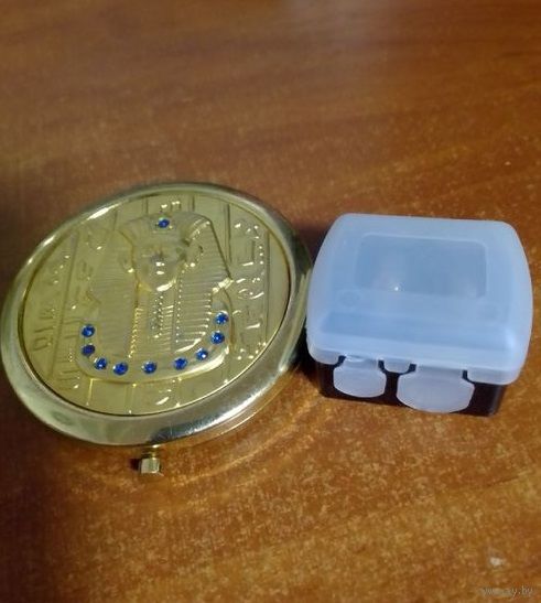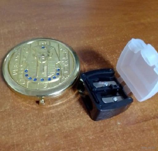 Зеркало (Египет) и новая хорошая точилка для косметических карандашей. Зеркало новое, но на одной половине появились разводы (попала влага), вторая часть чистая, без разводов и царапин. Продажа комплектом. Всего 12руб.