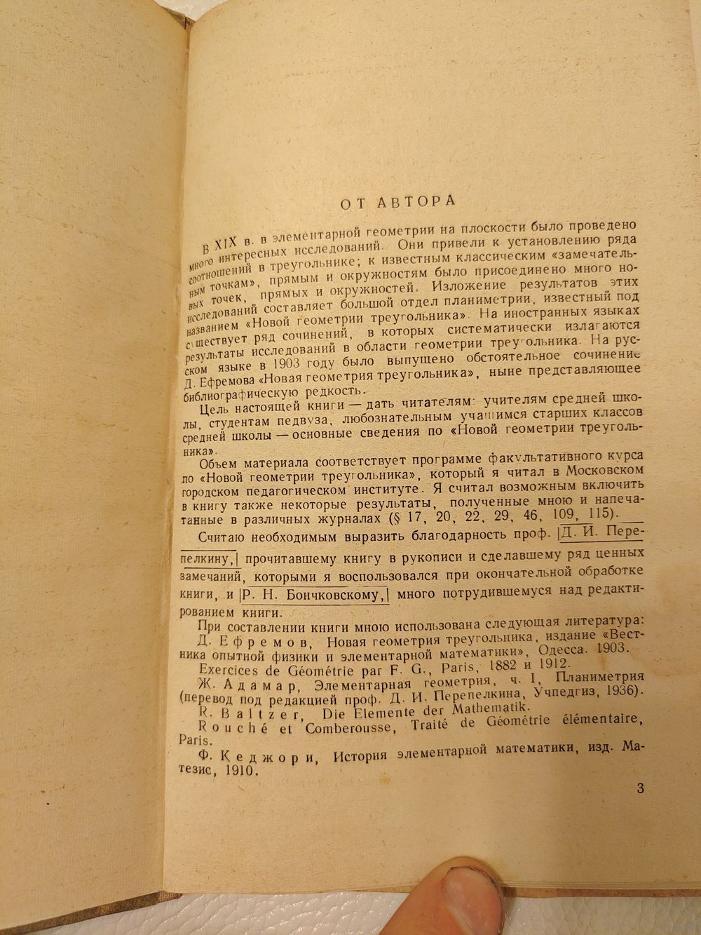 В XIX в. в элементарной геометрии на плоскости было проведено много интересных исследований. Они привели к установлению ряда соотношений в треугольнике, к известным классическим замечательным точкам, прямым и окружностям было присоединено много новых точек, прямых и окружностей. Изложение результатов этих исследований составляет большой отдел планиметрии, известный под названием Новой геометрии треугольника.
