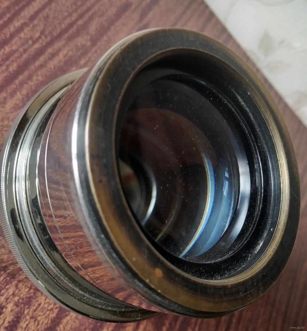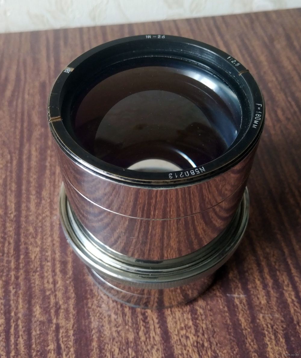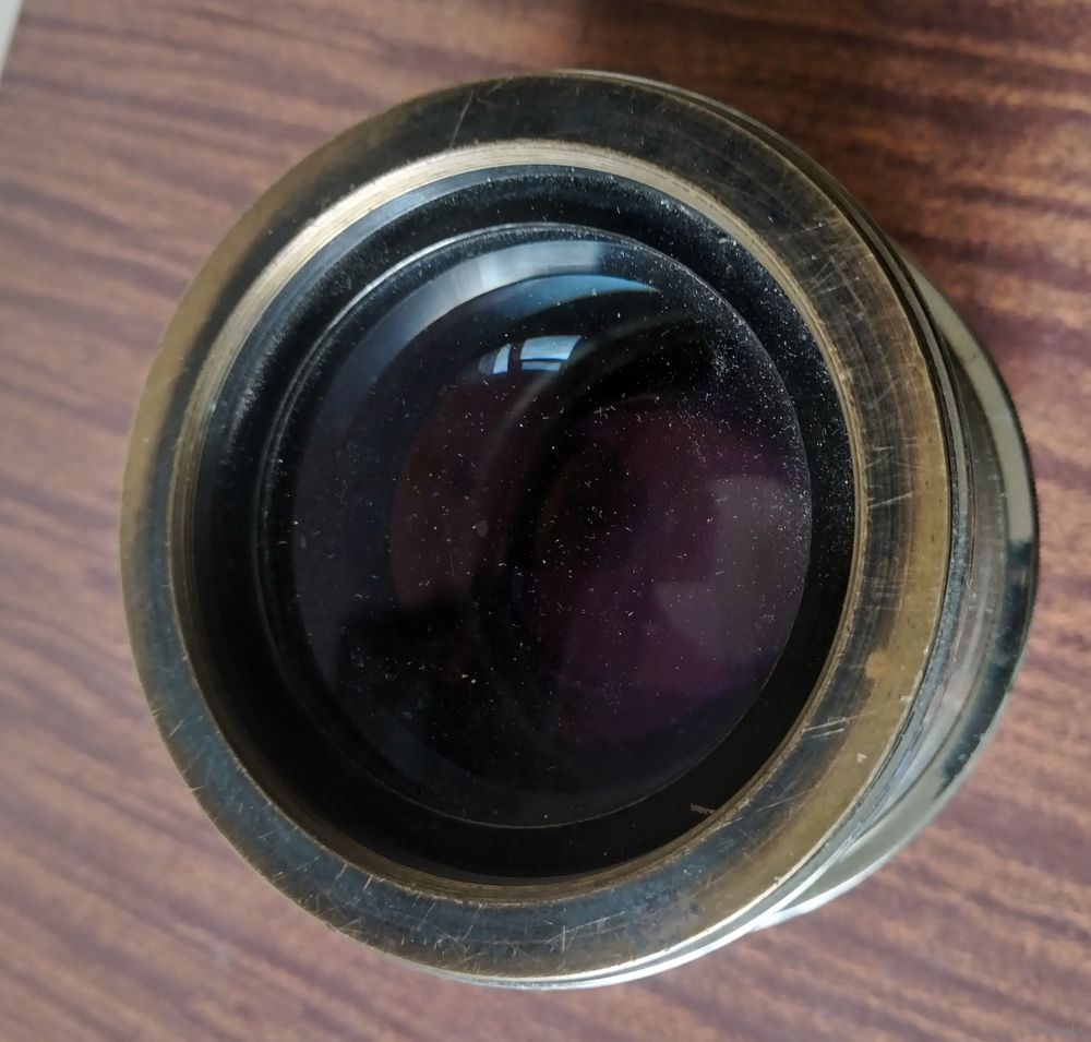Ж-26 180мм f/2.5 - проекционный объектив в латунном никелированном корпусе применялся для проецирования нормального 35-лш кадра на мозаику телевизионной трубки 9х12 см с увеличением 5,75 крат.