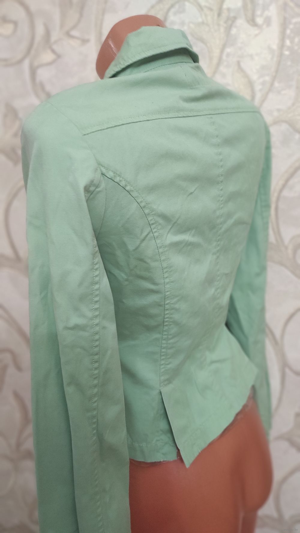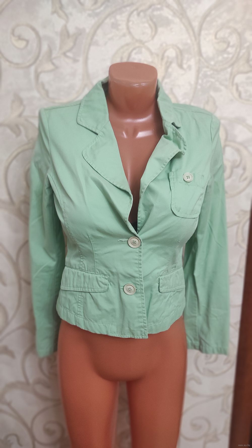 Жакет размер S цвет олива, Польша. 100% хлопок. Очень красиво сидит на фигуре, на ощупь приятная ткань. Длина 52 см, Погруди 45 см, длина рукава 58,5 см, ПОталии 38 см. Хорошее состояние.