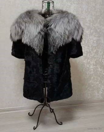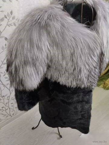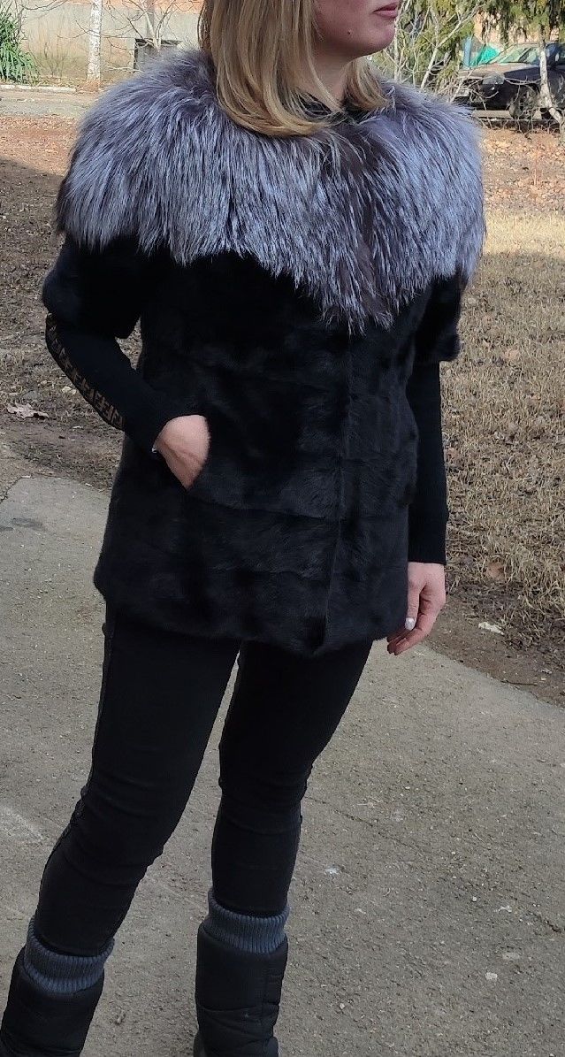 СТИЛЬ И АБСОЛЮТНЫЙ КОМФОРТ! Жакет/жилет с коротким рукавом. Полушубка. Модель, сочетающая в себе шикарный мех чернобурки и мех черной норки горизонтальной раскладки.Фабричное высококачественное производство "Rong JI FUR". Эксклюзивный дизайн. Кармашки и шубные клипсы. Мех в отличном состоянии: с живым глянцевым блеском и с великолепной пластикой не растянутых шкурок горизонтальной раскладки. Длина изделия по спинке - 65 см. На лично Ваш обхват груди не более 96 см (у шубки 108 см).
