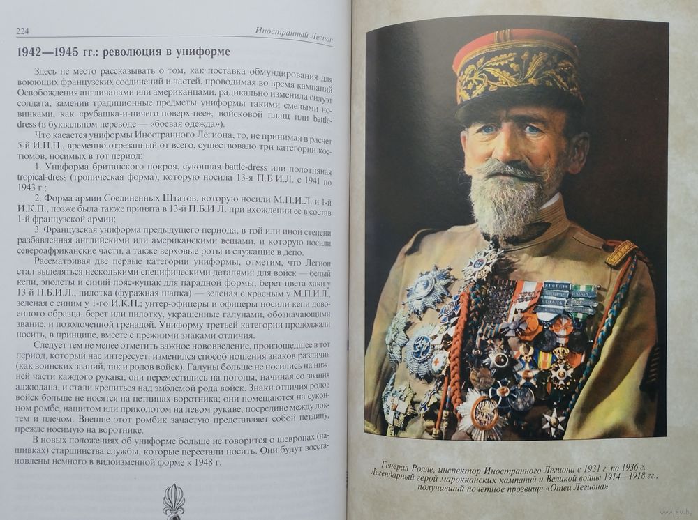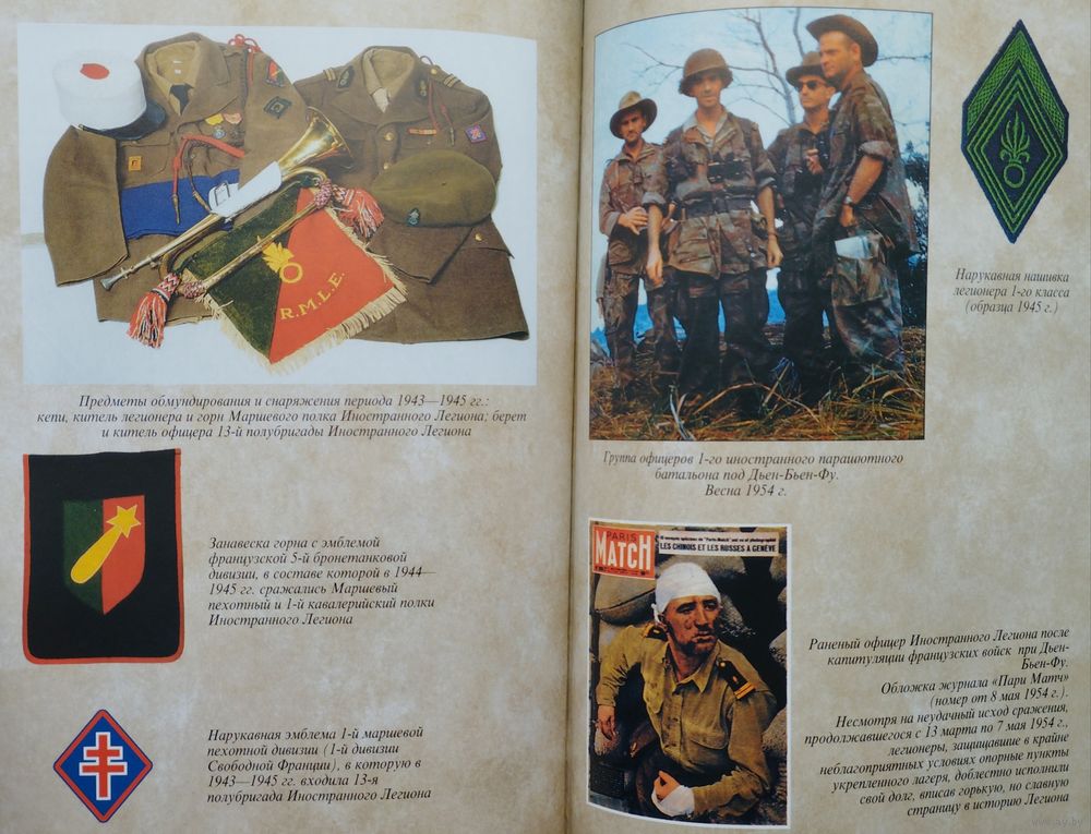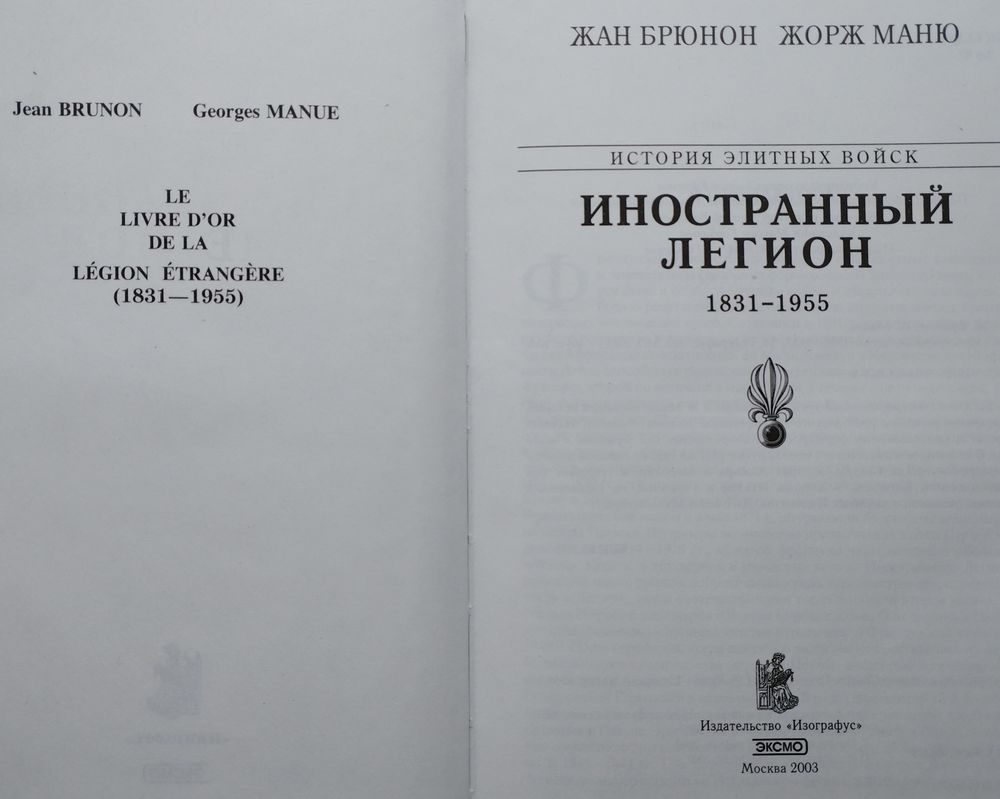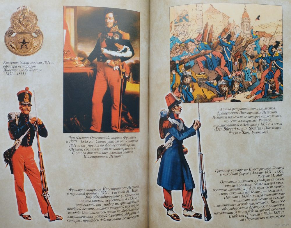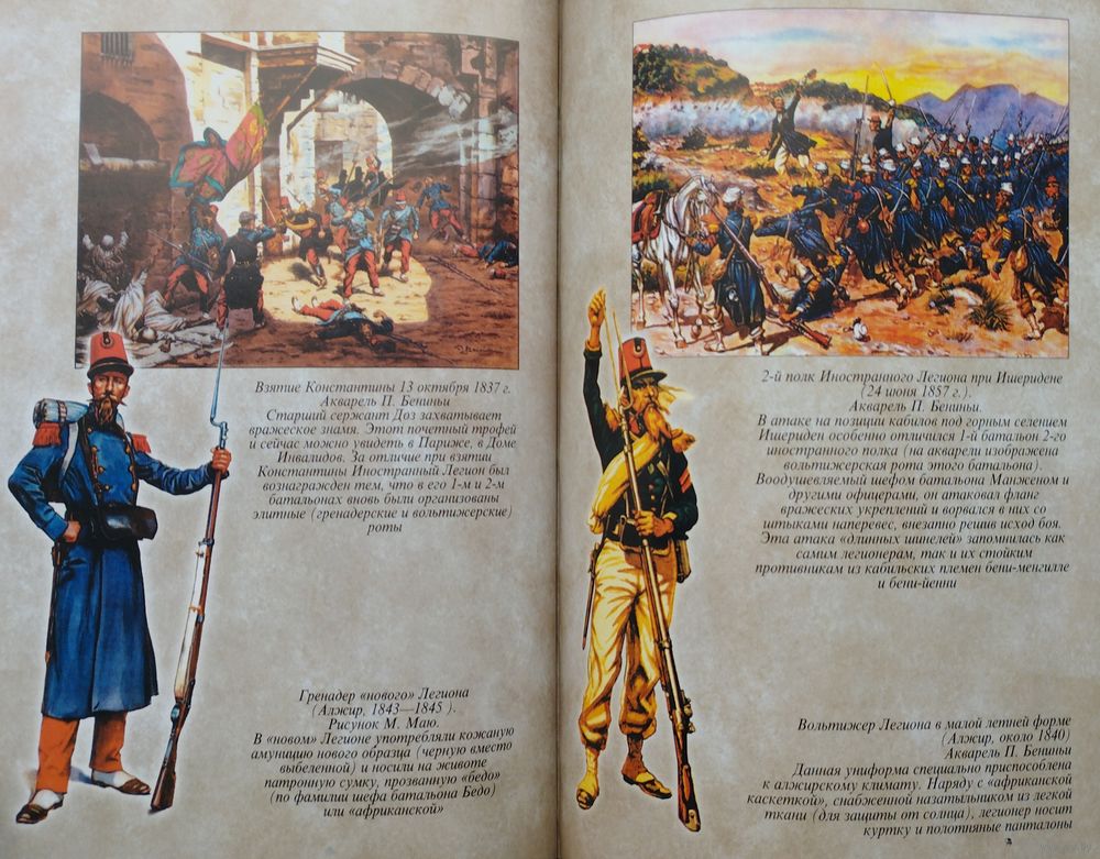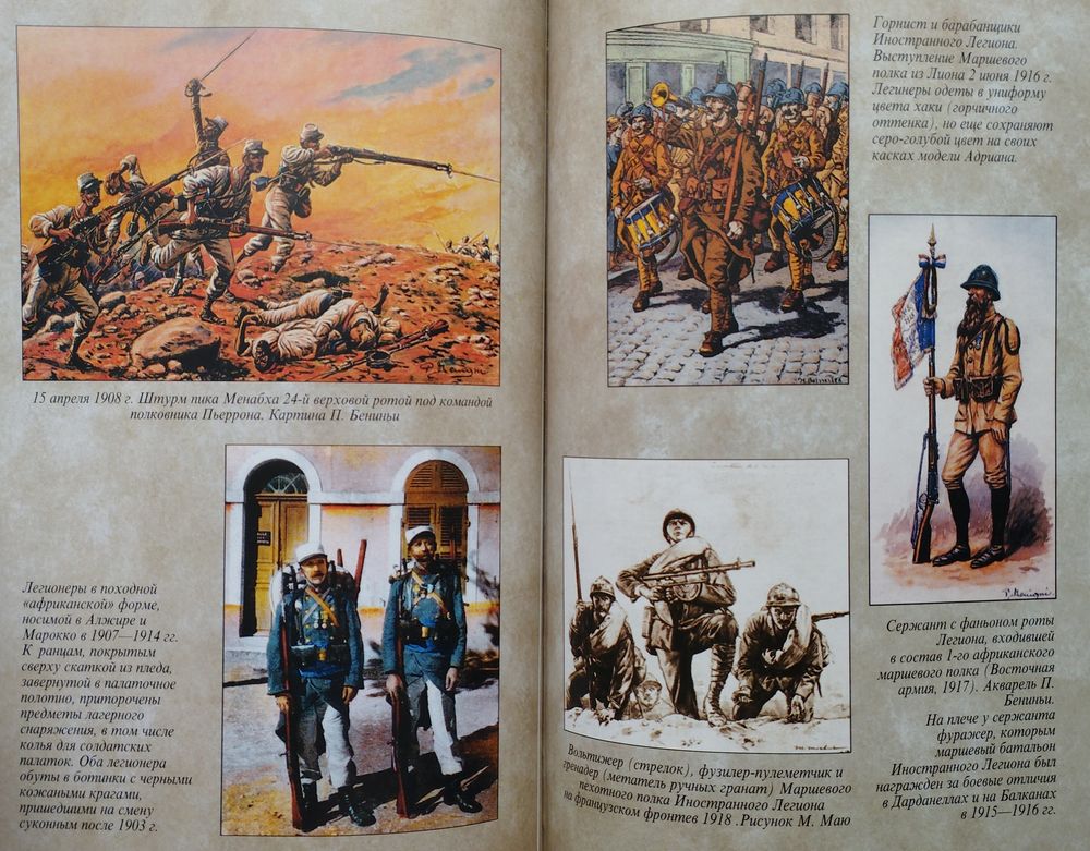 Большой энциклопедический формат. Тираж 5000 экз. 468 стр. Богато иллюстрированный труд Ж. Брюнона и Ж. Маню посвящен истории, традициям и регалиям французского Иностранного Легиона - одного из самых элитных и прославленных формирований вооруженных сил Франции и всего мира. В книге прослеживается его боевой путь с 1831 по 1955 г.; описаны подвиги легионеров в песках Сахары, в горах Алжира и Марокко, в траншеях под Севастополем и Верденом, в долинах Италии и Германии, на раскаленных равнинах Мексики, в джунглях Индокитая, Дагомеи и Мадагаскара.