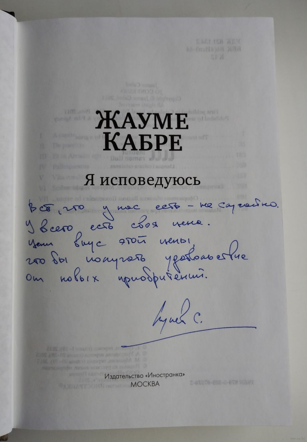 но есть загрязнения среза блока страниц и дарственная подпись на титуле. |