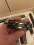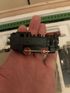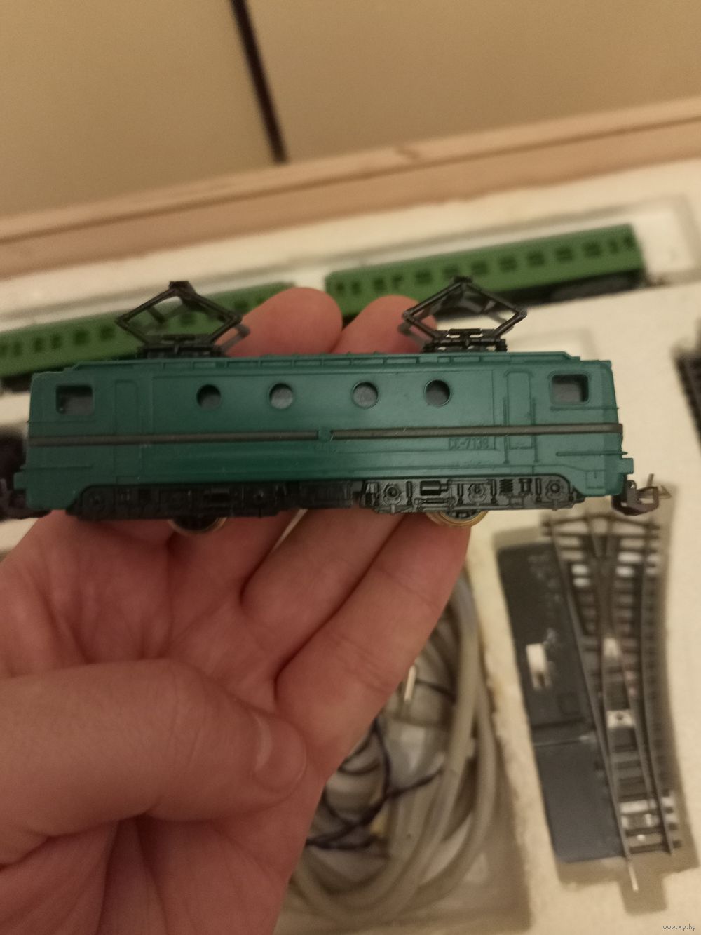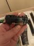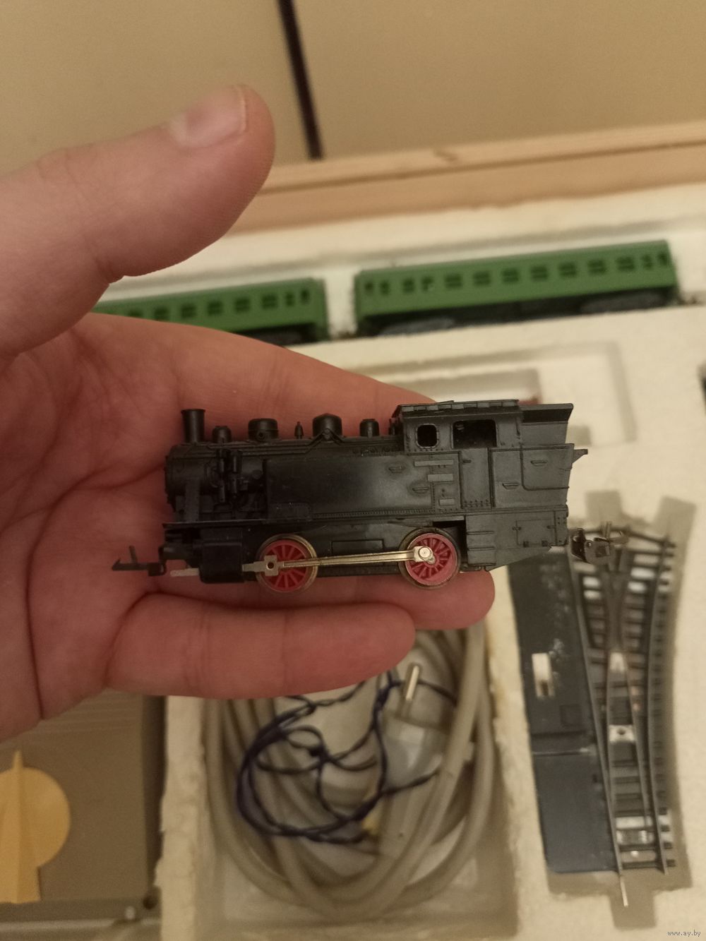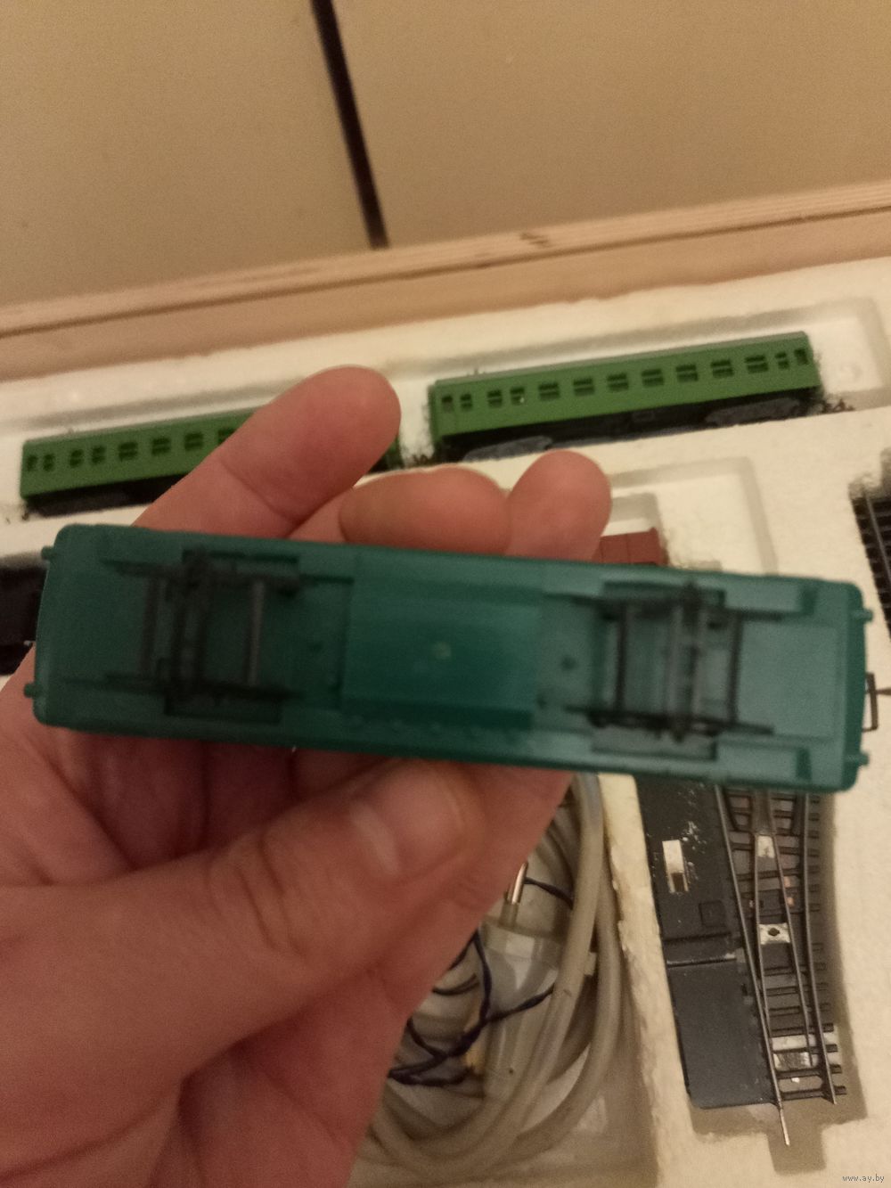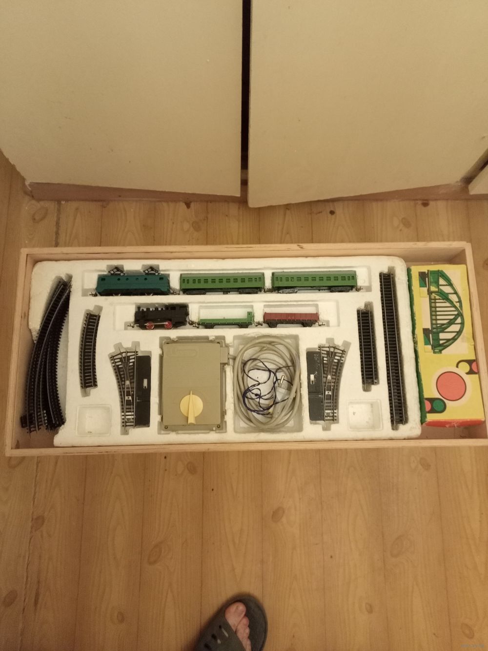 На паровозе на передней сцепке частично отсутствует сцепка, и есть скол пластика возе кабины. Вместо родной коробки сделан из фанеры ящик с закрывающийся крышкой