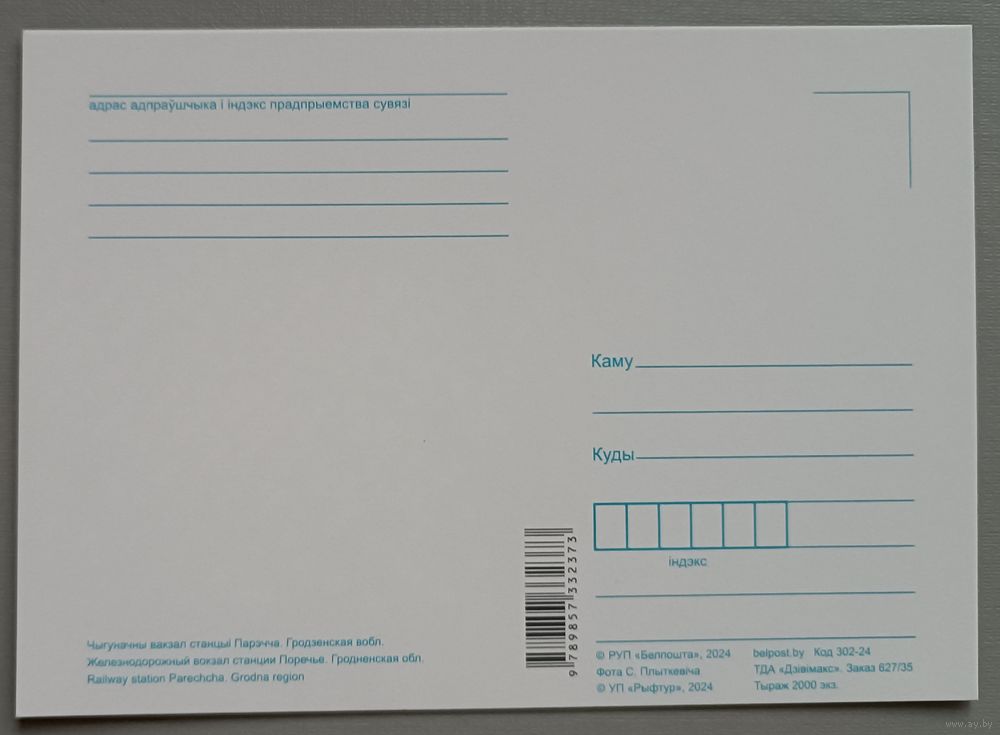 Железнодорожный вокзал, станция Поречье, Гродненская обл.. Открытка, глянец