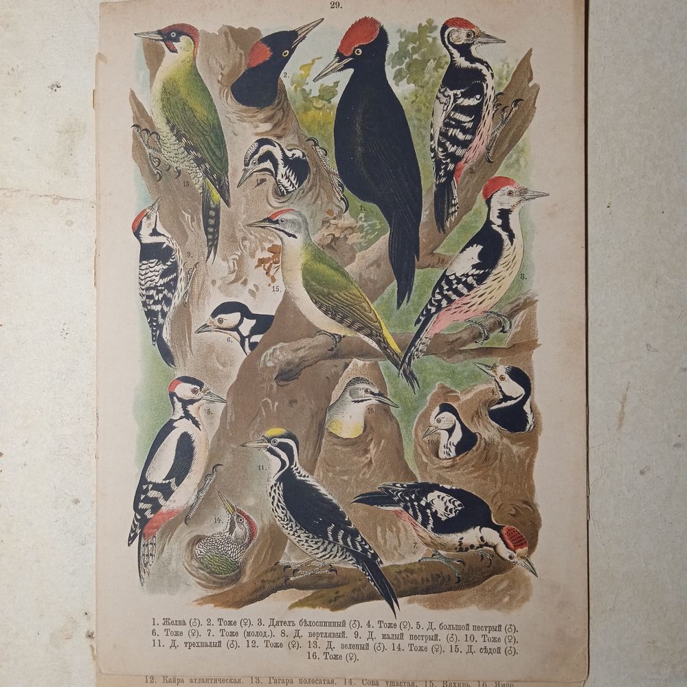 Желна. Дятелъ... Литография СПБ. Энциклопедическая гравюра конец 19века 29х21см.
