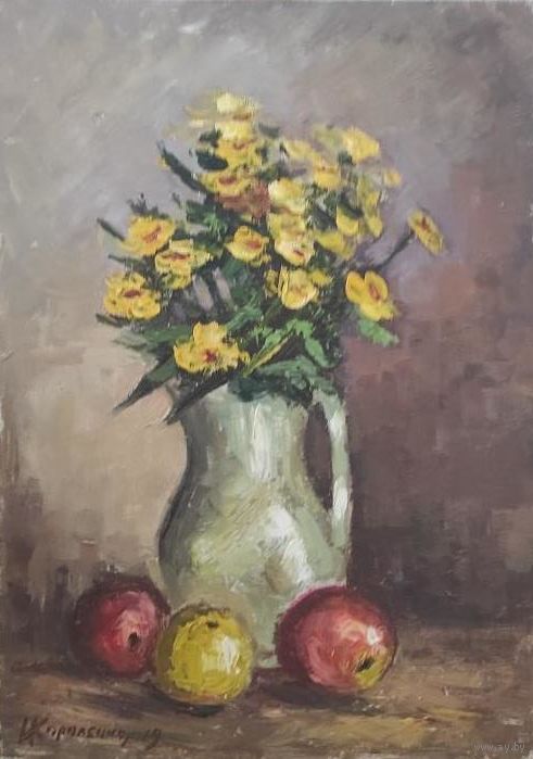 Картина "Желтые цветы" двп, масло, размер 30х21см.
