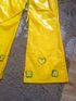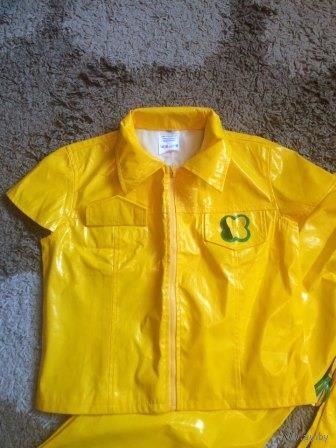 Желтый маскарадный костюм на рост 152 см. Замеры: жакет длина 45 см, ПОгруди 44 см. Брюки длина 93 см, ПОталии тянется на резинки 25-36 см. Отлично тянется талия. Классный костюм, не носили.