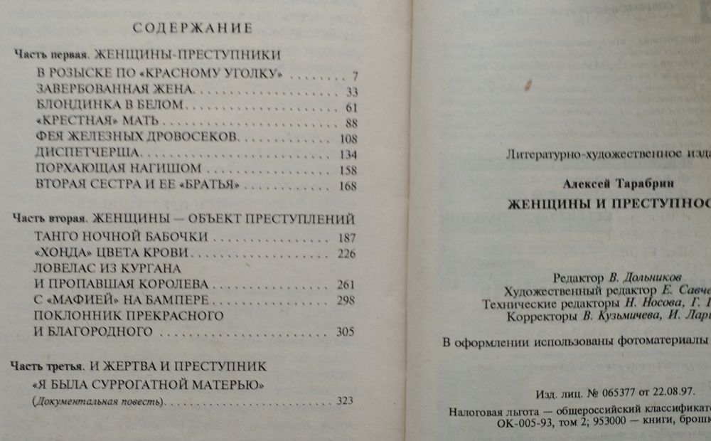 Тираж 20000 экз. 464 стр. Женщины и преступность Тема огромная, сложная и страшная В документальной книге А. Тарабрина рассказывается не только о женщинах, ставших жертвами преступлений, но и о женщинах-преступницах Многообразен лик женской преступности Приманка для доверчивых богачей, "суррогатная" мать, живой товар для публичных домов и стриптиз-клубов, "сексуальная игрушка", хладнокровный киллер, глава преступного синдиката...