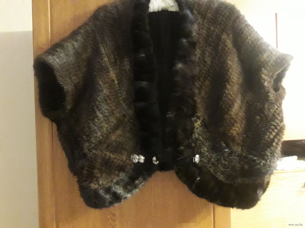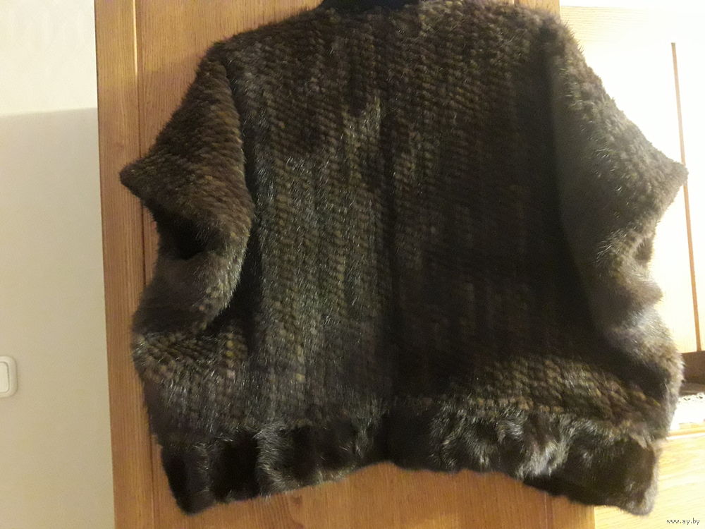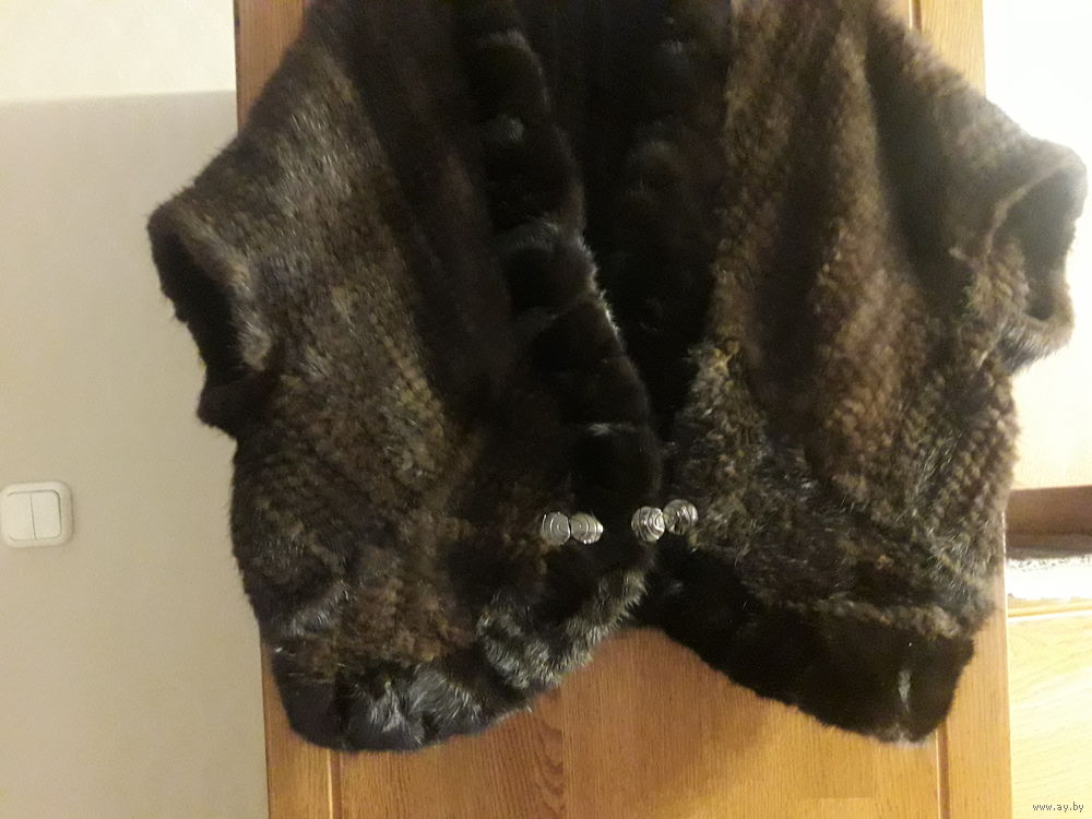Женская вязаная безрукавка темно-коричневого цвета из натурального меха норки. Спереди и сзади оторочена лапками из меха норки, размер от 50 до 54 ( свободнее ил плотнее-по желанию). Декоративная застежка пришита мной. Длина по спинке ( от края и до края) -58 см, рукав спущен. Безрукавка очень теплая и хорошо смотрится, в отличном состоянии, одета несколько раз!
