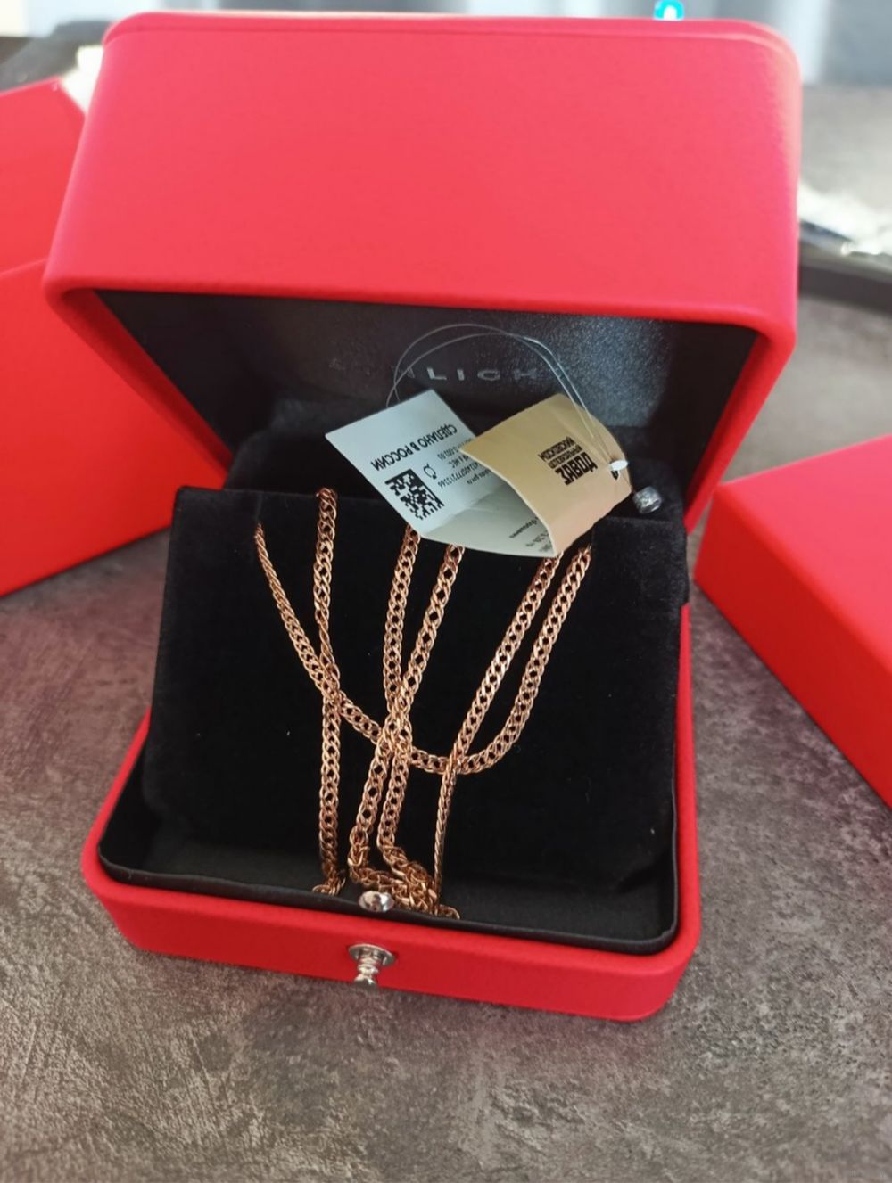 Полновесная золотая цепочка 585 пробы, вес 7.06 гр., длинна 50 см, плетение нонна.Бирка с пломбой на месте.Цена 2000 р.