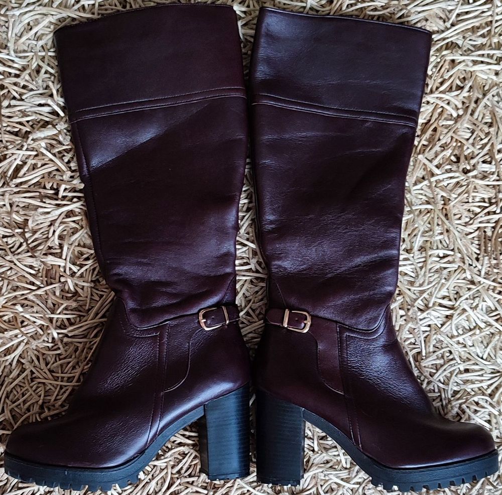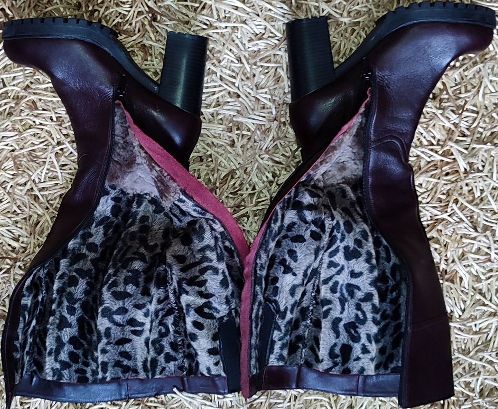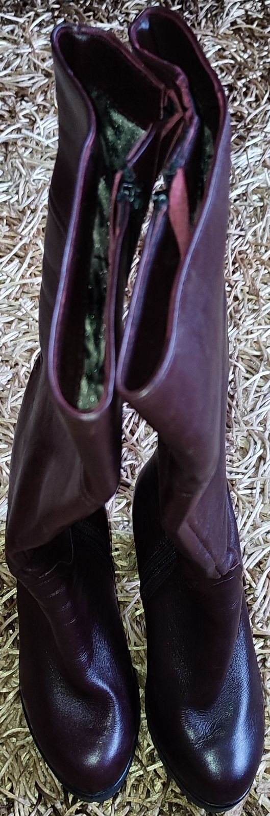 Женские зимние кожаные сапоги Юничел (РФ, Урал) 37-го размера. Цвета спелой вишни, состояние новых. Размер по стельке 23см, высота 44,5см. Верх из натуральной кожи, внутренняя подкладка: стопа натуральный мех, верхняя часть искусственный мех.