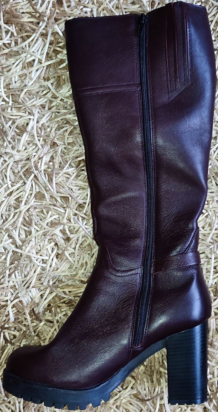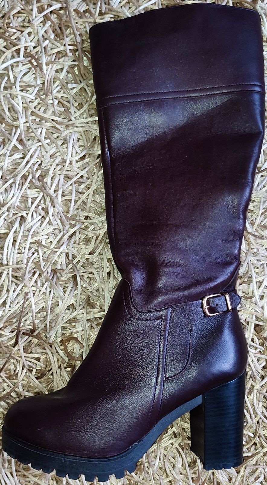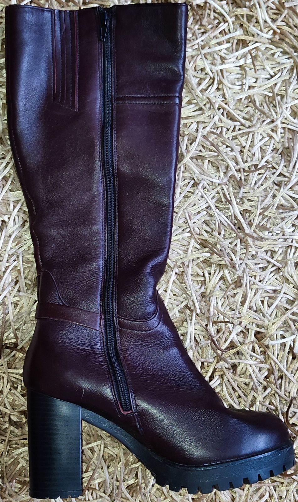 Женские зимние кожаные сапоги Юничел (РФ, Урал) 37-го размера. Цвета спелой вишни, состояние новых. Размер по стельке 23см, высота 44,5см. Верх из натуральной кожи, внутренняя подкладка: стопа натуральный мех, верхняя часть искусственный мех.