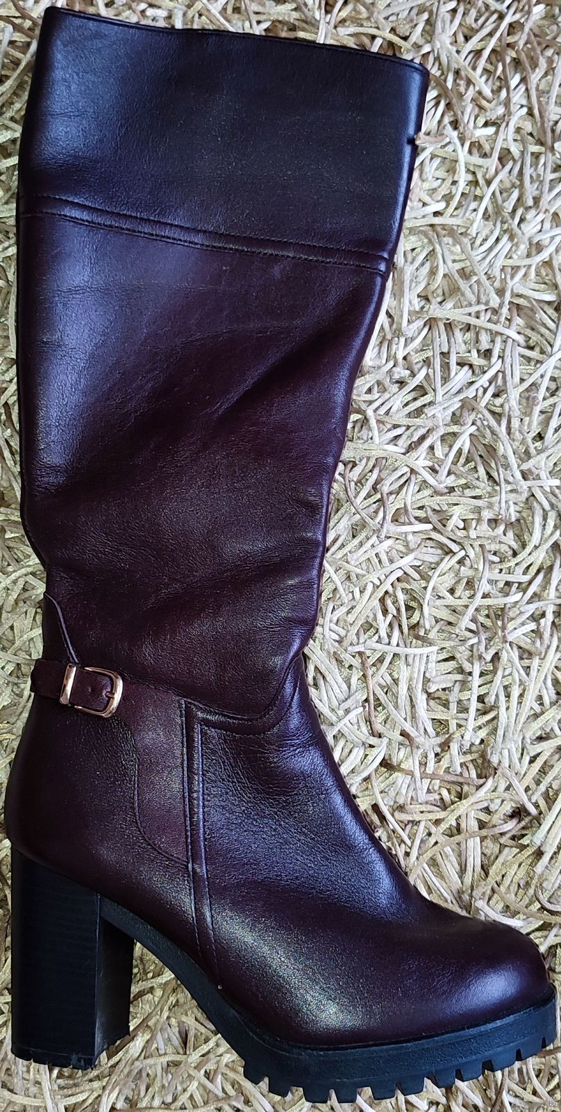 Женские зимние кожаные сапоги Юничел (РФ, Урал) 37-го размера. Цвета спелой вишни, состояние новых. Размер по стельке 23см, высота 44,5см. Верх из натуральной кожи, внутренняя подкладка: стопа натуральный мех, верхняя часть искусственный мех.