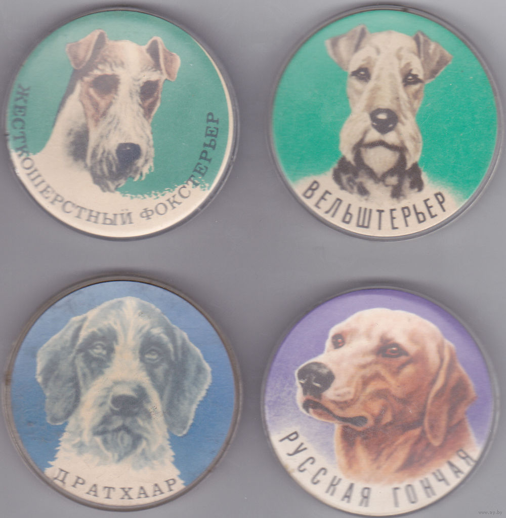 Жесткошерстный фокстерьер, вельштерьер, дратхаар и русская гончая.