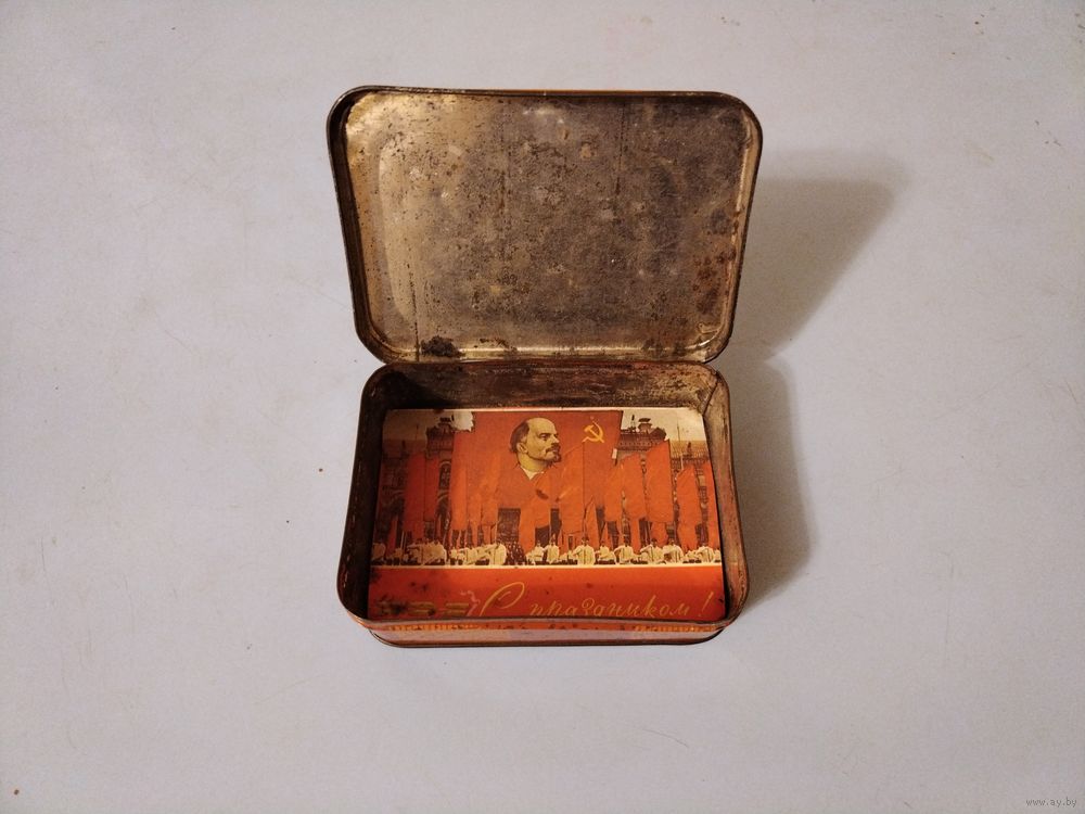 Жестяная коробка рабочий и колхозница