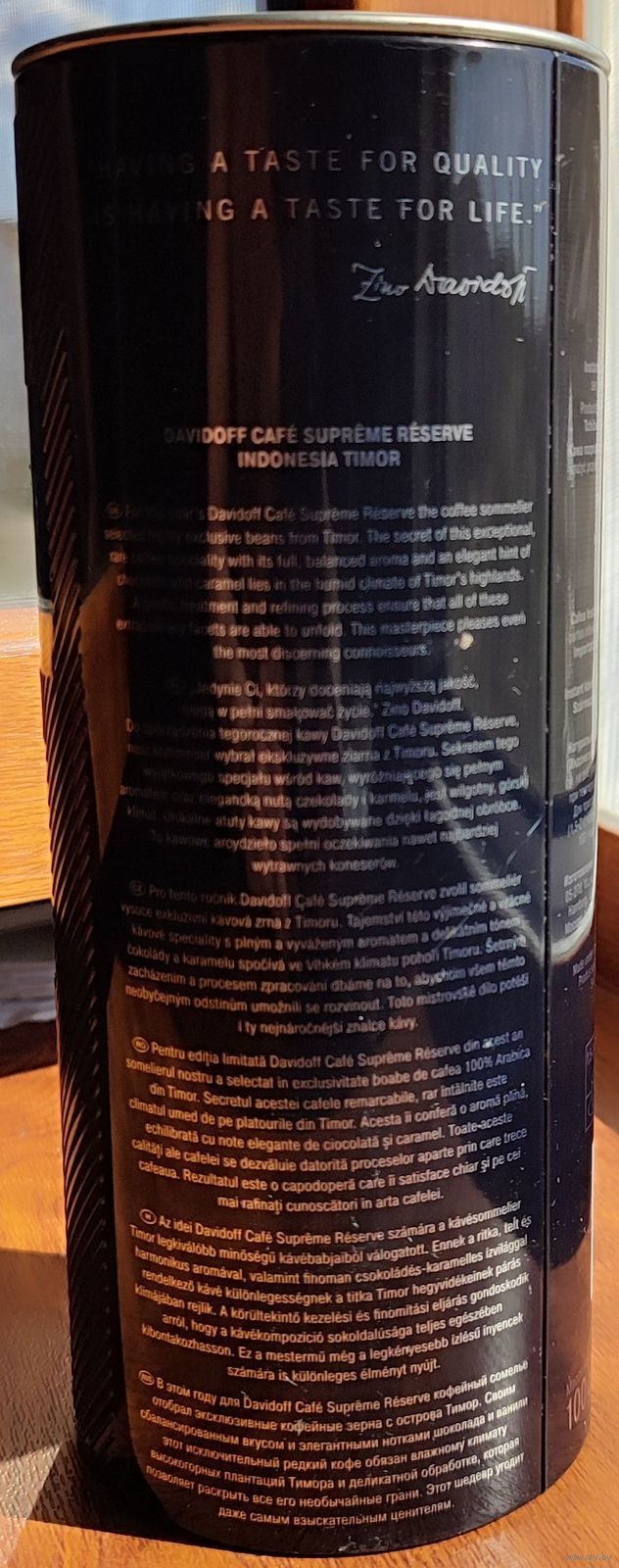 Жестяная туба из-под кофе Davidoff Supreme Reserve. Без вмятин. Размер: 200*80мм