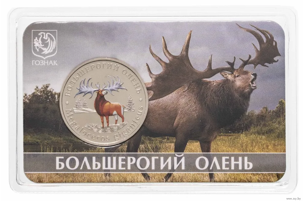 Жетон ГОЗНАК 5 червонцев 2024 ММД Исчезнувшие животные Большерогий олень в блистере