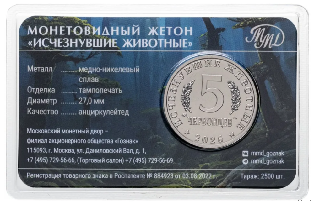 Жетон ГОЗНАК 5 червонцев 2025 ММД Исчезнувшие животные Килеск в блистере