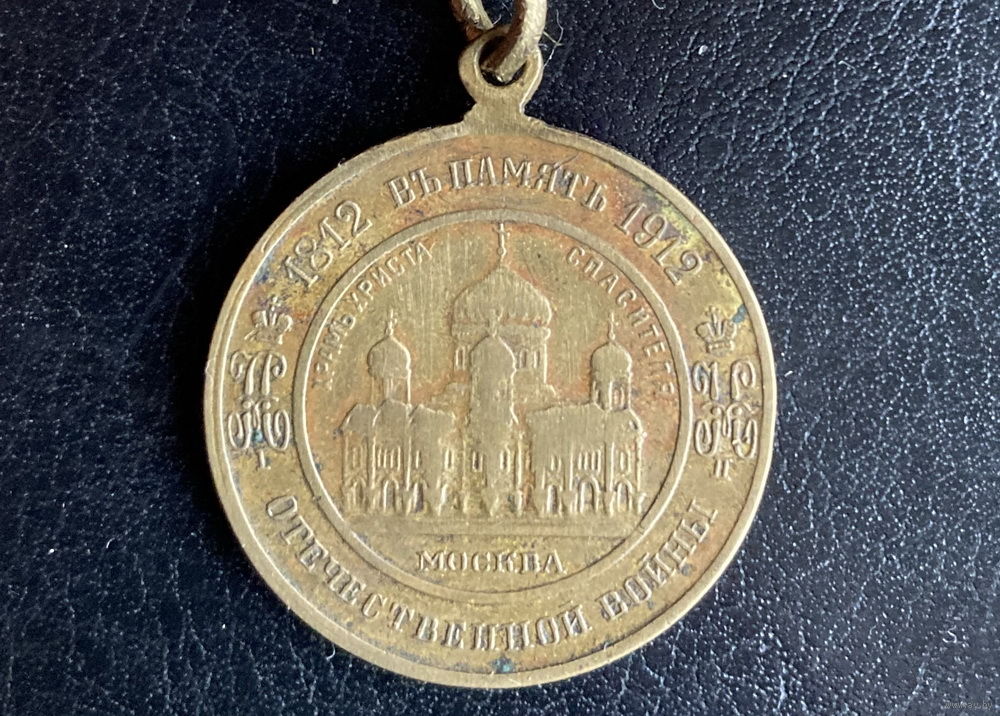 Реверс: в двух концентрических кругах по бокам увенчанные коронами вензеля императоров: слева — Александра I, справа — Николая И. Вверху надпись: 1812 ВЪ ПАМЯТЬ 1912; внизу — ОТЕЧЕСТВЕННОЙ ВОЙНЫ. В центре изображен храм Христа Спасителя и надписи: вверху — ХРАМЪ ХРИСТА СПАСИТЕЛЯ, а внизу — МОСКВА.