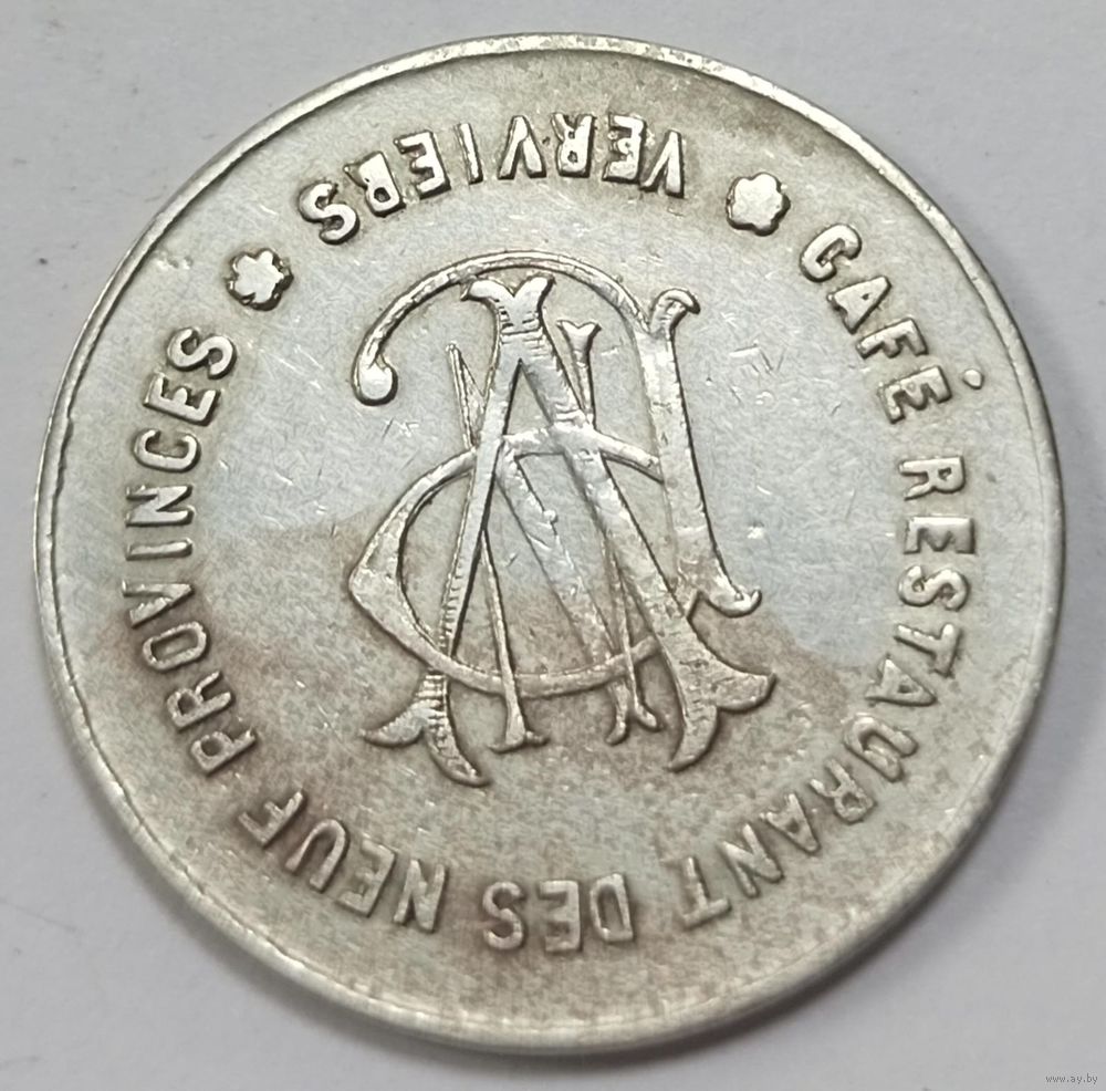 Жетон (токен) Вервье (Бельгия) 1 франк. Cafе Restaurant Des Neuf Provinces (Кафе-ресторан Девять провинций).