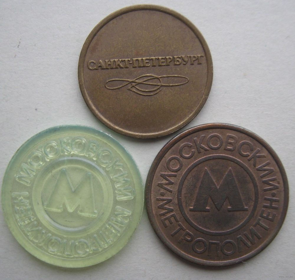 Жетоны метро Санкт-Петербурга и Москвы.