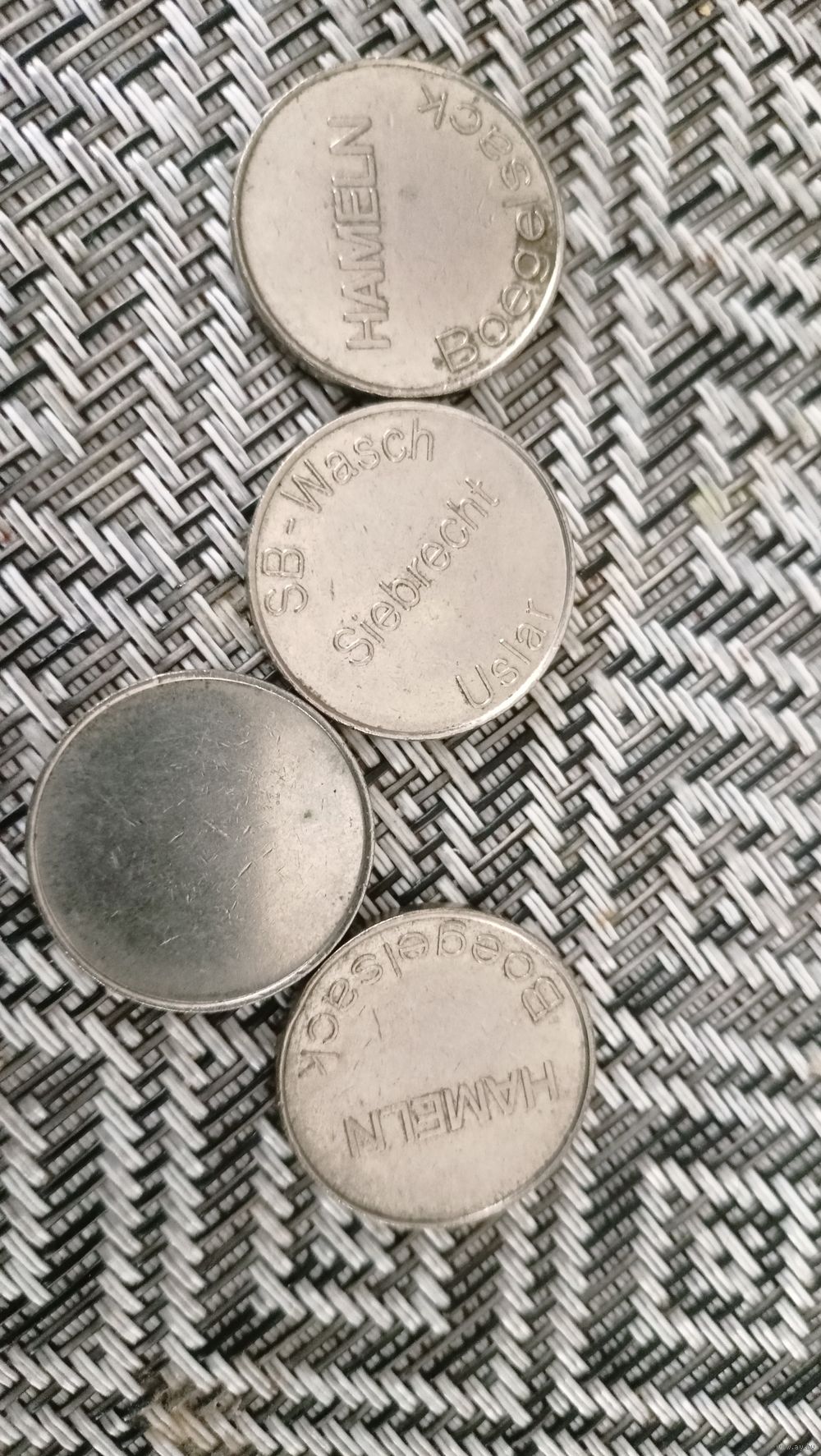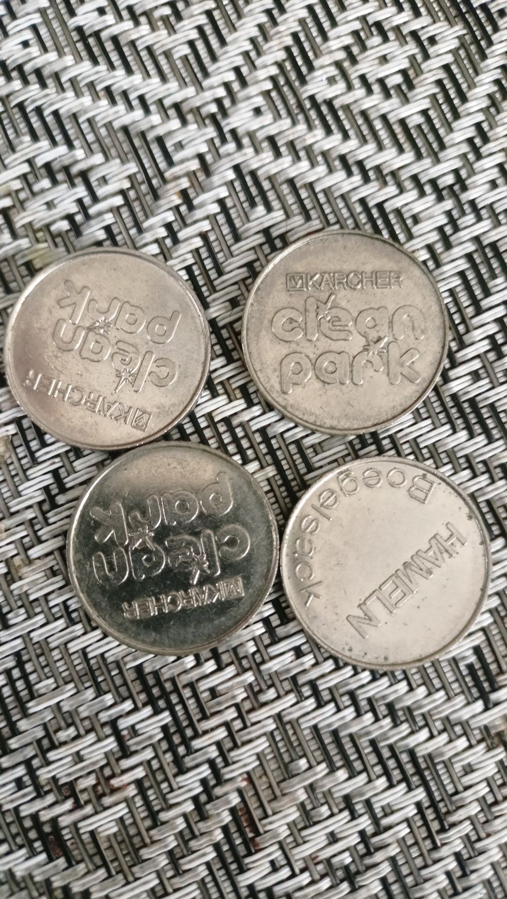 Жетоны автомойки Clean Park Hameln, на одном из жетонов на одной стороне нет изображения.
