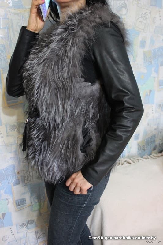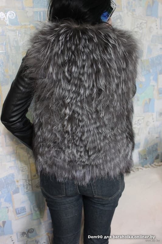 Жилет жилетка мех лиса чернобурка 42-44-46. Классная, пышная, стильная.